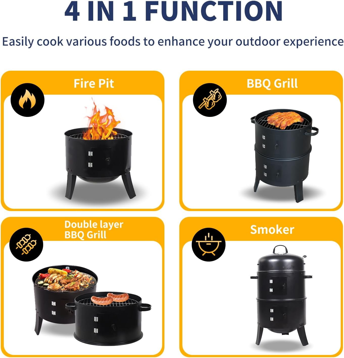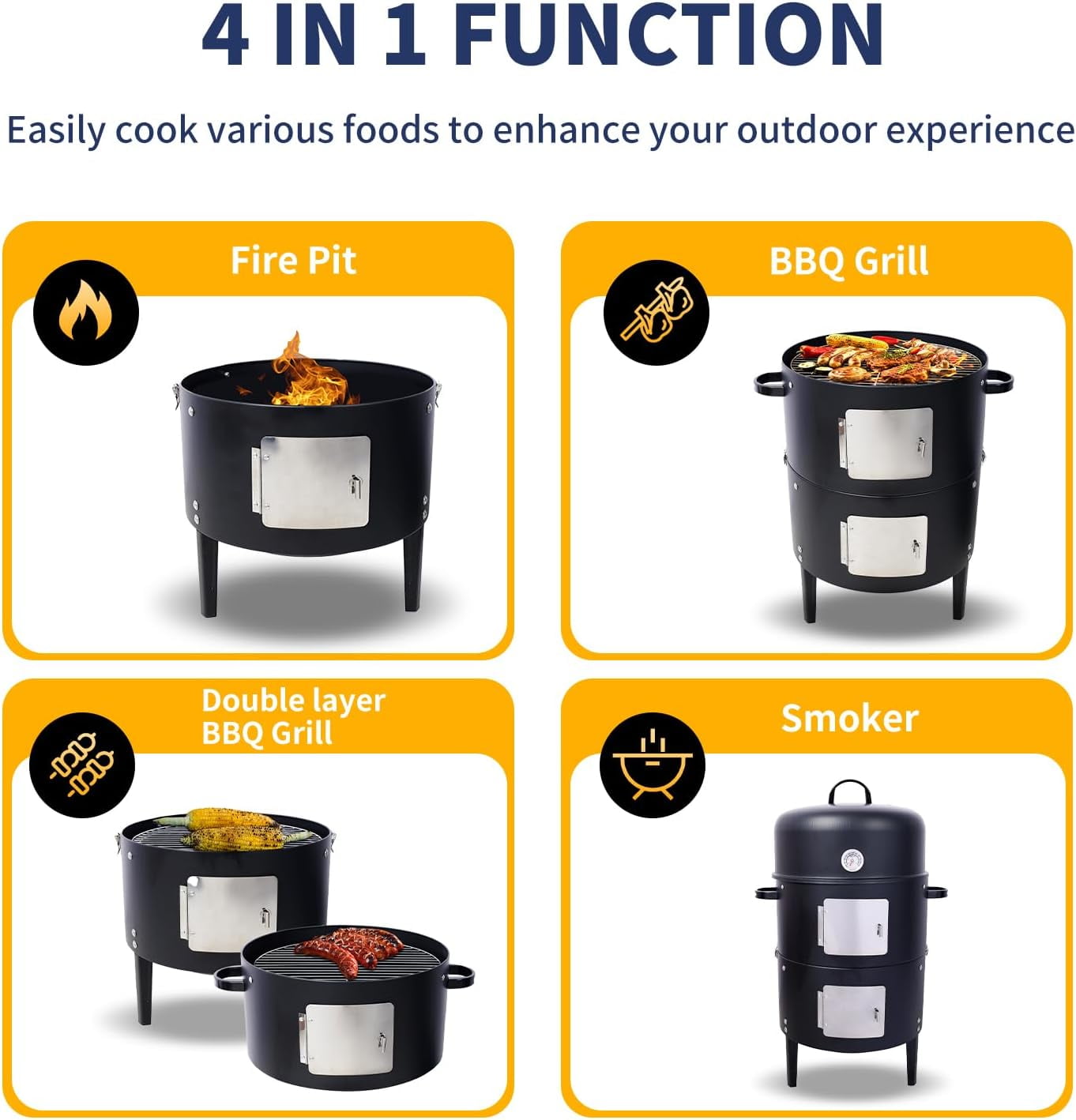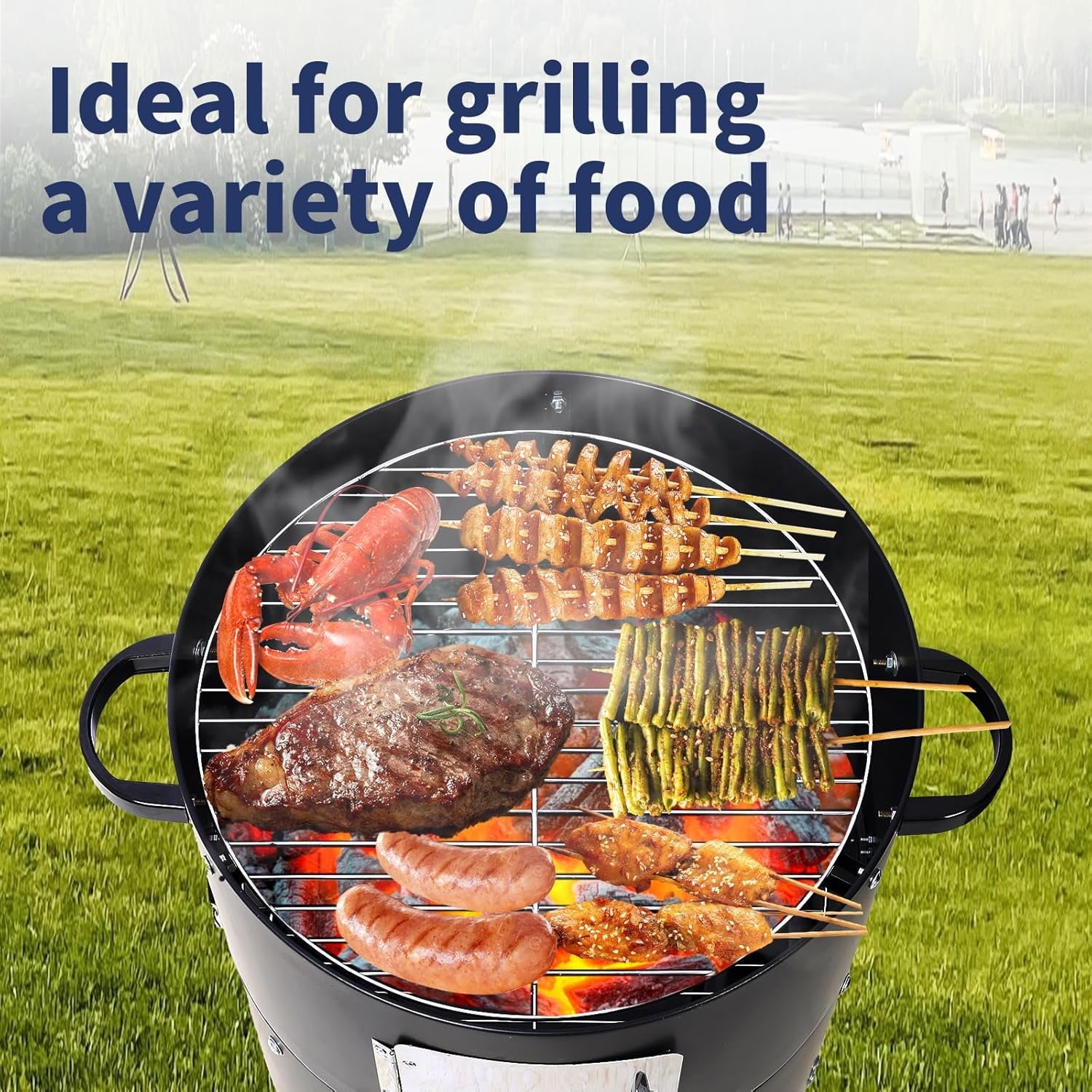 - 3-in-1 Versatile Design: Enjoy smoking, grilling, and a cozy fire pit with this multi-functional charcoal smoker. Perfect for backyard barbecues, camping trips, and outdoor gatherings.