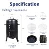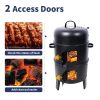 16 inch Vertical Charcoal Smoker, Mini BBQ Grill, Fire Pit, 3-in-1 with Built-in Thermometer, Adjustable Air Vent, Idea for Parties, Backyard, Patio, Camping