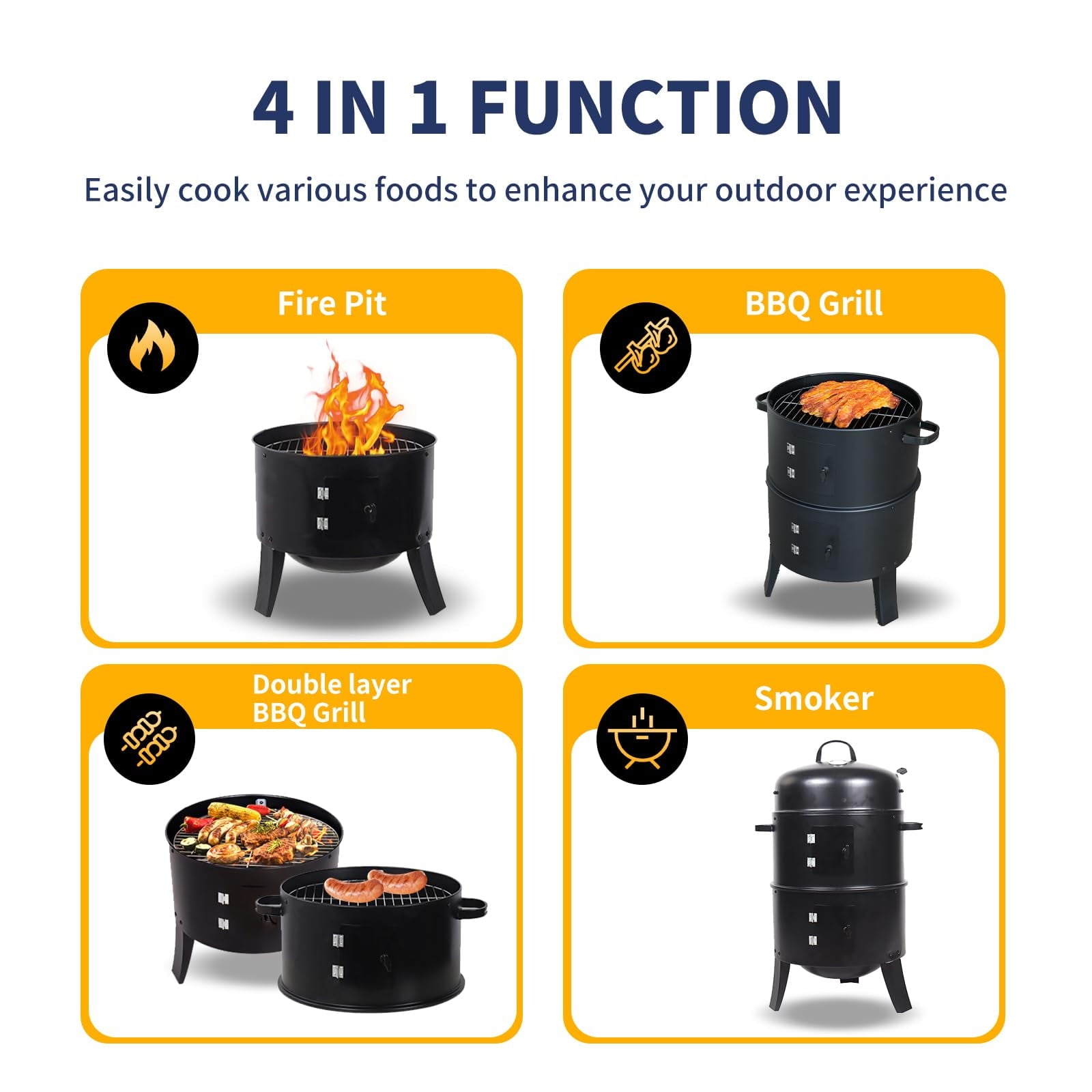• 3-in-1 Versatile Design: Enjoy smoking, grilling, and a cozy fire pit with this multi-functional charcoal smoker. Perfect for backyard barbecues, camping trips, and outdoor gatherings.