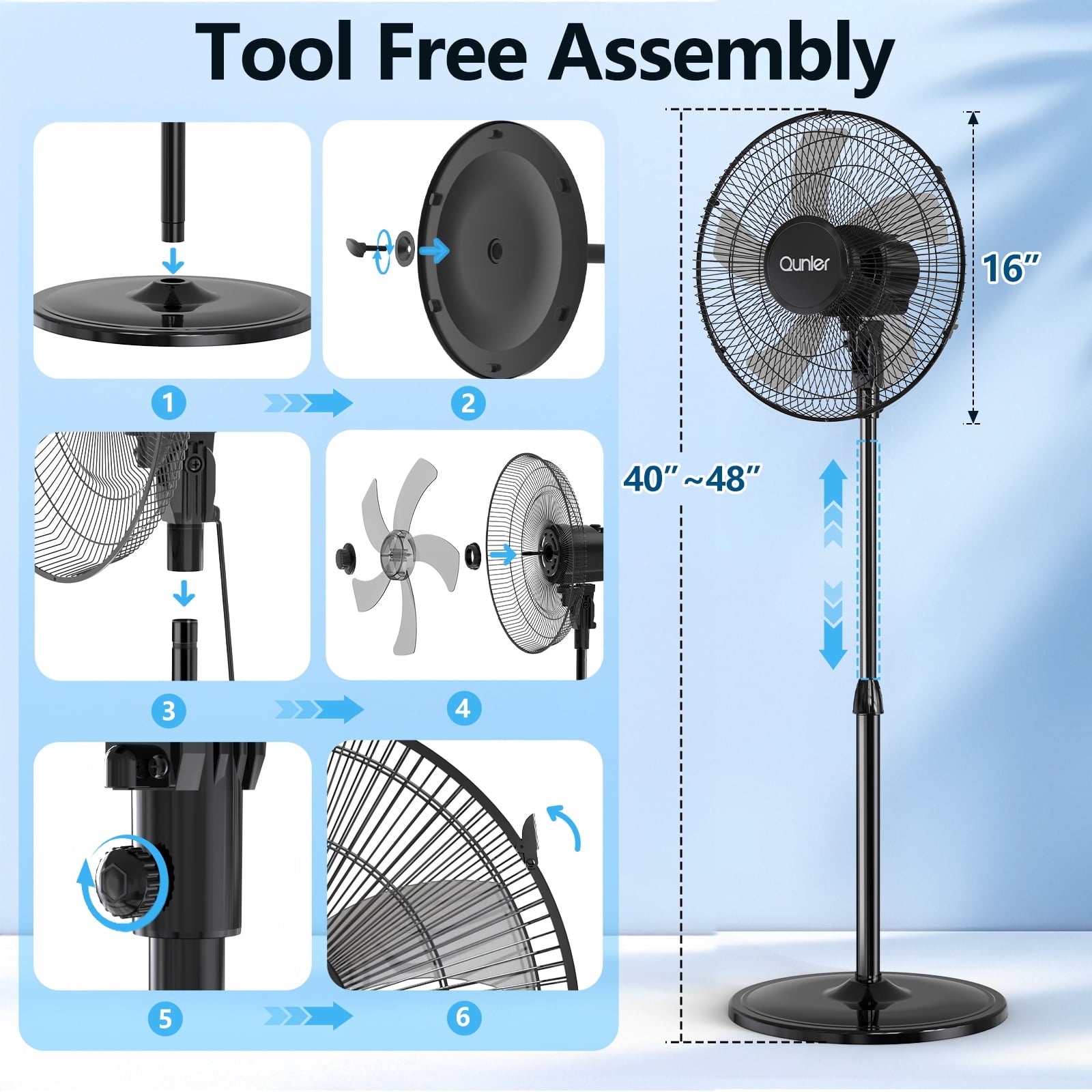 ❄ Easy to Use and Safe-Assembles in minutes. Just as easy to take apart to clean. The big and heavy-duty base could provide additional stability for the portable pedestal fan during its operation. The built-in overheat protection automatically switches the standing fan off when the motor overheats. The kid friendly safety grid will create a safe and cool environment for every member of the family.