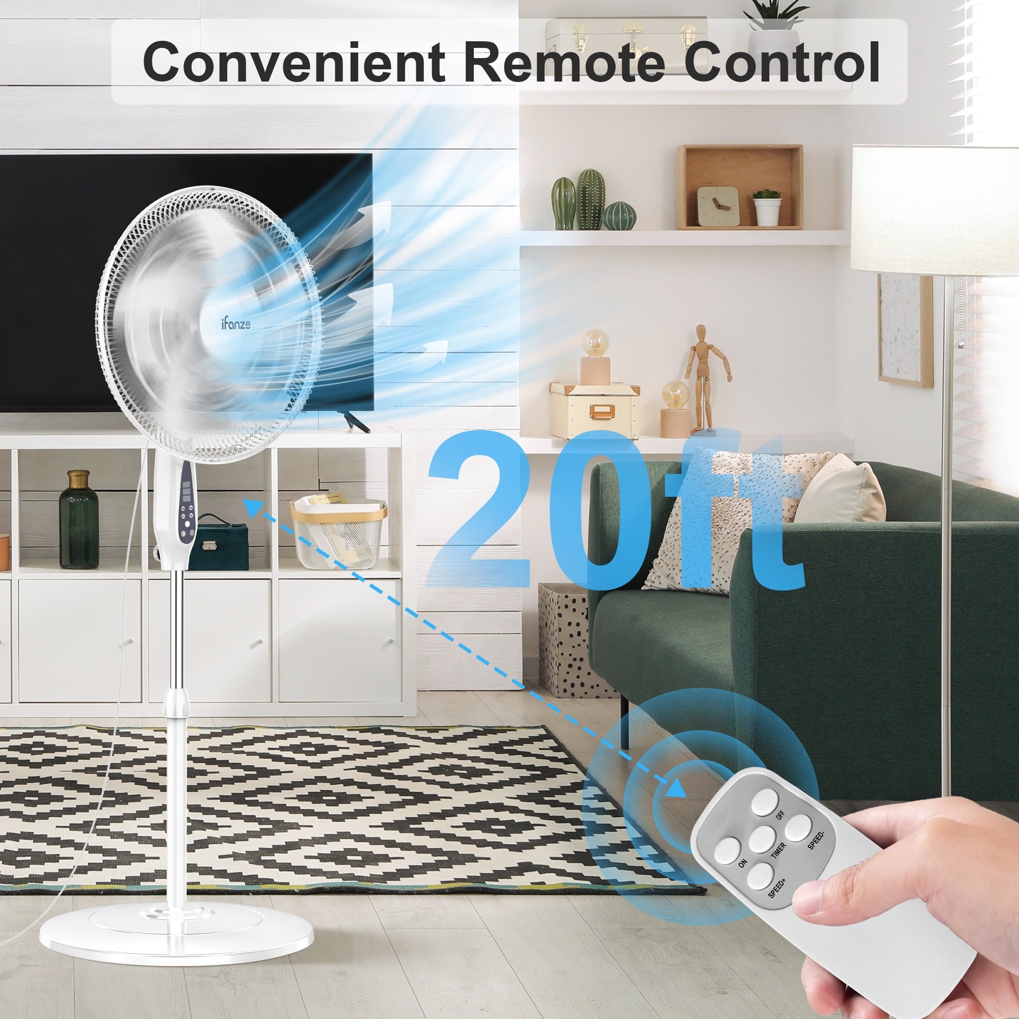 ❄Remote Control Fan + 3 Speeds + 10H Timer + Lights-Off Button