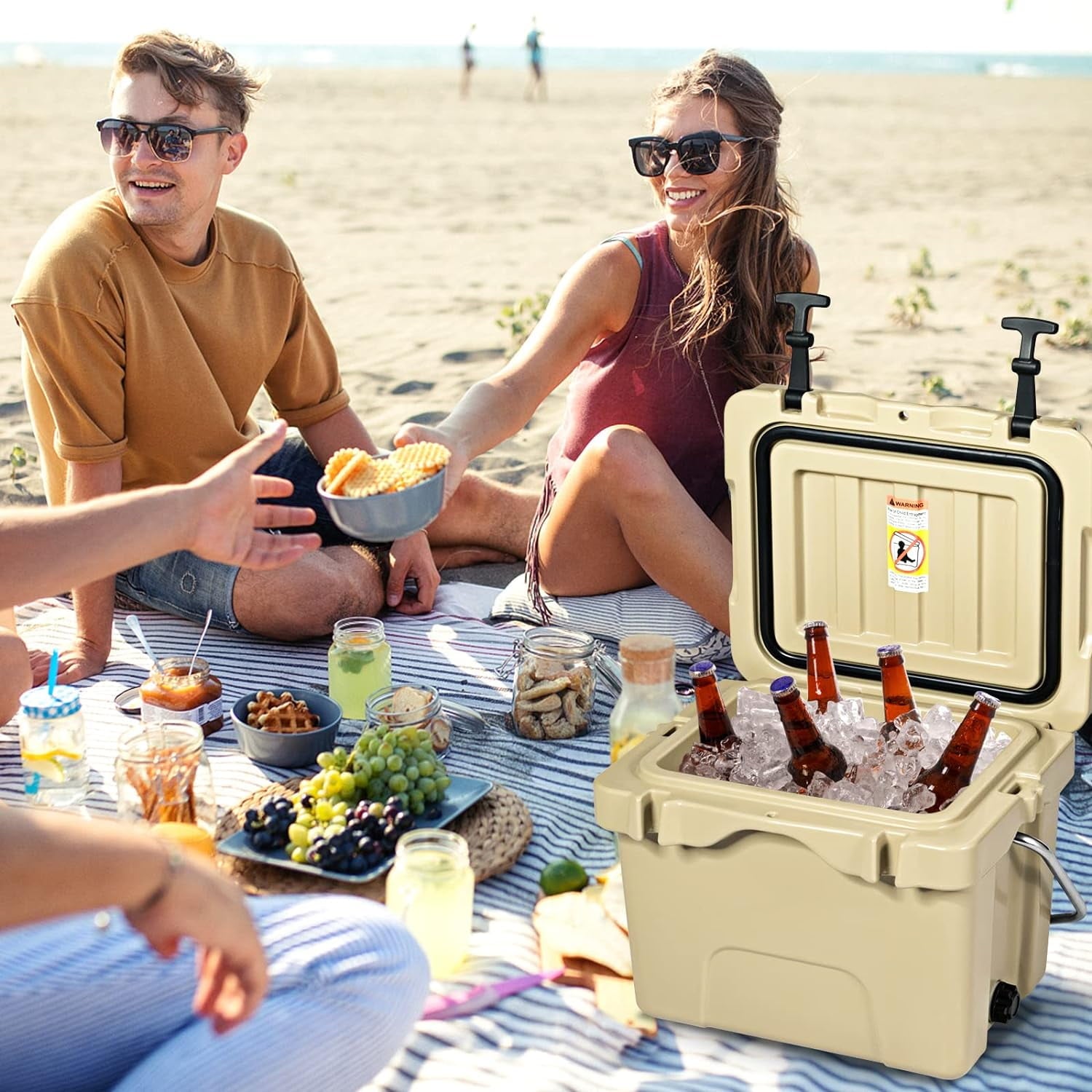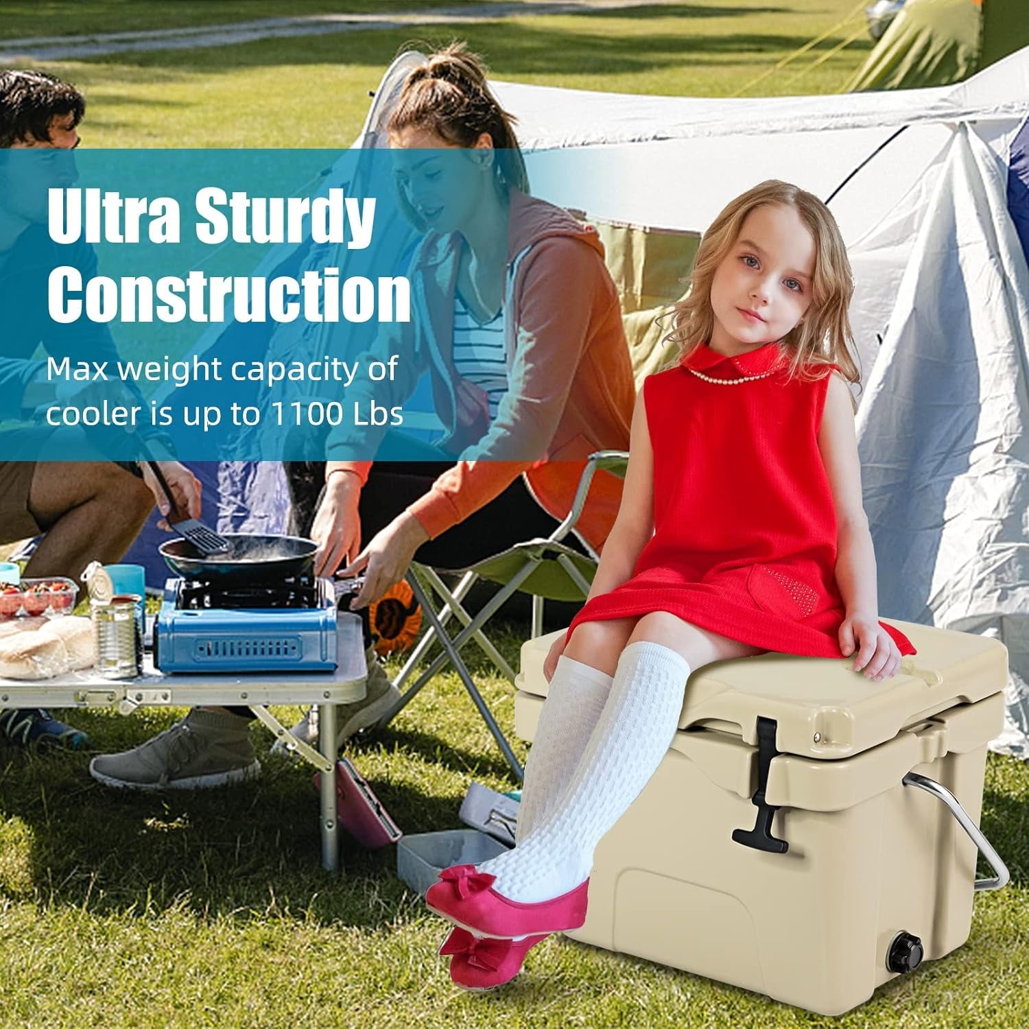 [Good Load-bearing Construction]This heavy-duty cooler is rotomolded for the toughest condition, and it can withstand up to 1100 pounds, making it durable for years of use.And the bottom is equipped with 4 anti-slip foot pads, which can enhance stability and prevent sudden sliding in a moving truck.