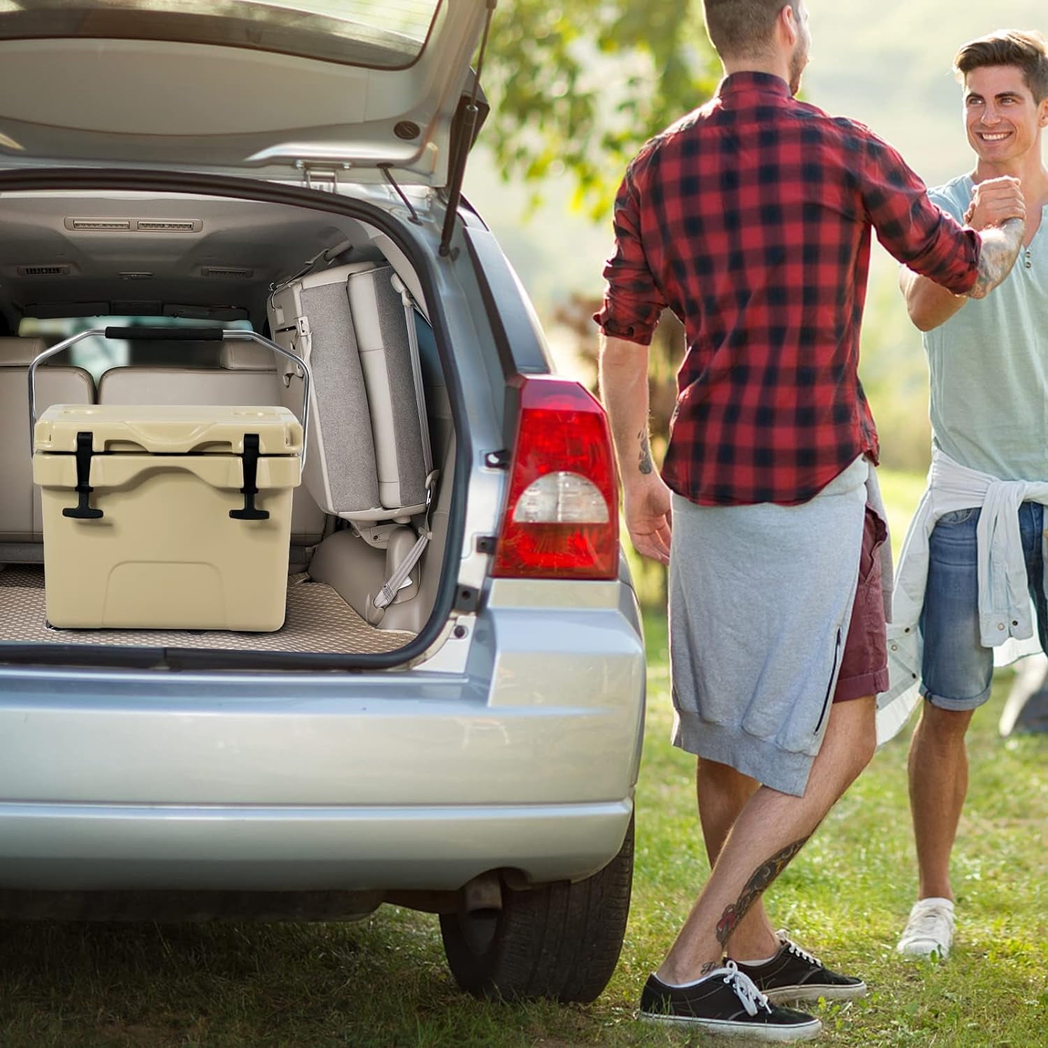 [Lightweight & Portable Design]Weighing only 13lbs when empty, you can take this ice chest everywhere with handle and enjoy fresh food all times.Meanwhile, the stainless steel handle is softly padded, which allows you to to carry and lift comfortably.