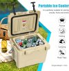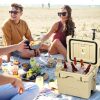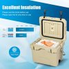 [3-5 Days Ice Retention]Our cooler is build with premium PE and PU material, which provides superior insulation and high strength.And tightly sealed lid seals the whole space to avoid heat convection and prolong the storage time.Thus, the ice box can keep cold up to 3 days with recommended