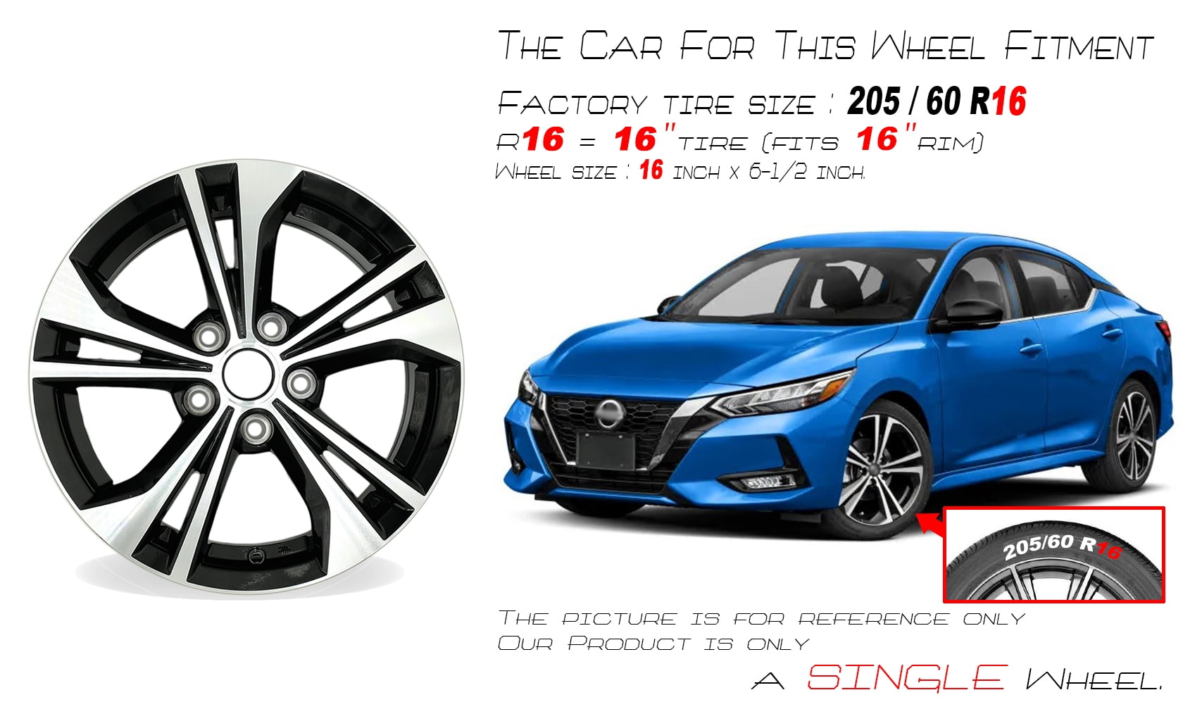 • ✓ This Fits: ✓ SENTRA 2020-2023 16×6-1/2, alloy (5 double spoke)   ✓ OEM Tire Size:  205/60R16      ✓ Color/Finish: MACHINE BLACK