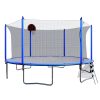 [5-in-1 Sports Bundle] This trampoline accessories for kids includes a basketball hoop, soccer goal, pump, ladder, and rubber ball for active fun.