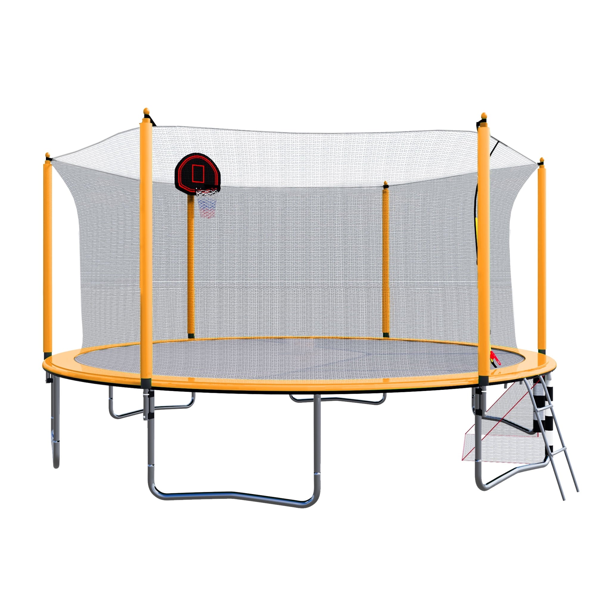 This heavy-duty recreational trampoline prioritizes safety with ASTM certification, featuring a 360° high-density PE safety net (71 inches tall) that’s UV-resistant, waterproof, and tear-proof. The double zipper and buckle closure system ensures maximum