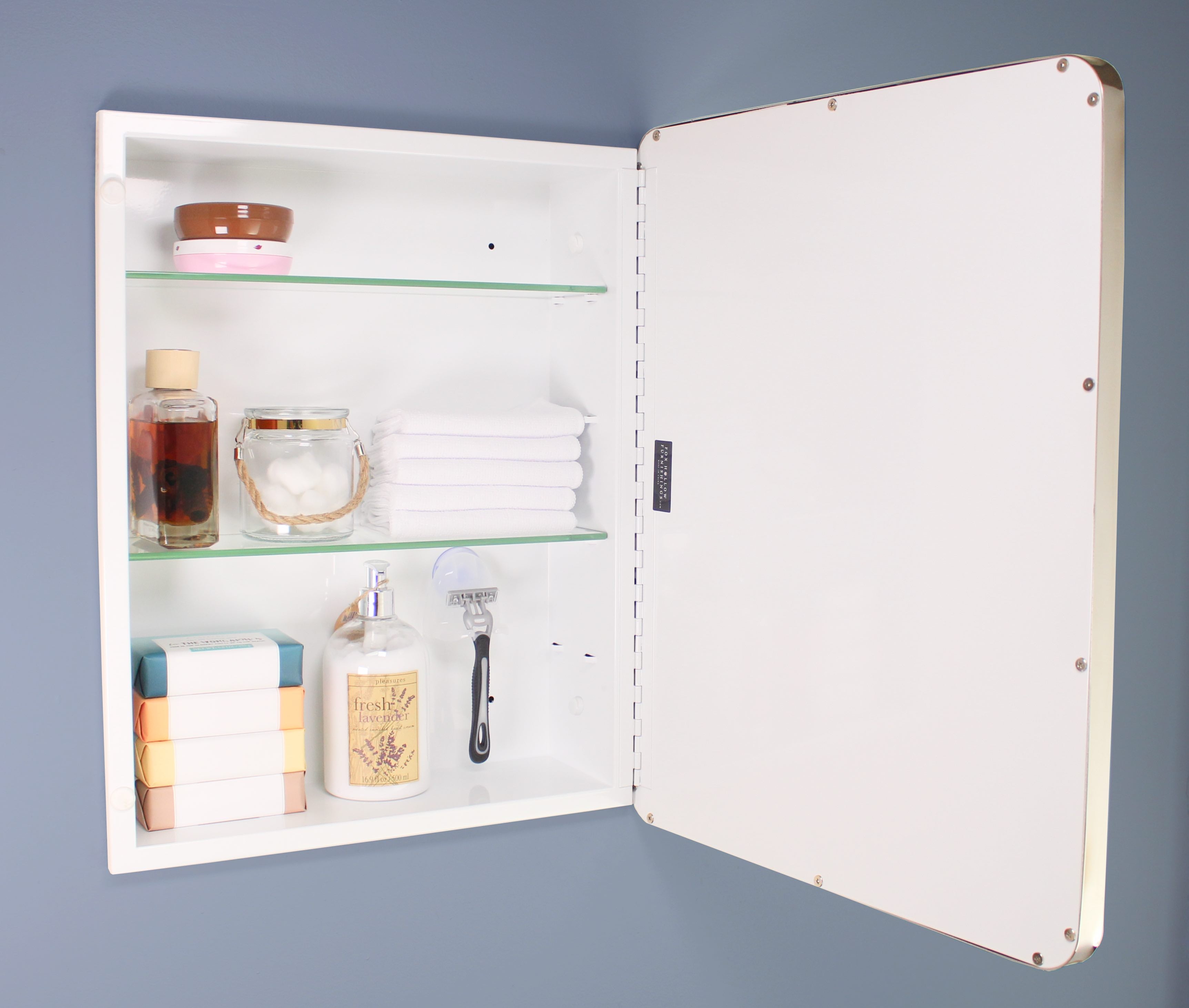 Transport yourself back in time to a vintage hotel or city apartment with the Austin Farmhouse Rounded Rectangle Recessed Bathroom Medicine Cabinet by Fox Hollow Furnishings. The rounded edges of the beveled mirror and clean overall design add a refined look that complements all modern baths and styles, from contemporary to rustic. Constructed from durable metals and glass, this recessed medicine chest is the last medicine cabinet you’ll ever need to buy.