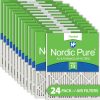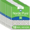 Nordic Pure MERV 13 Pleated AC Furnace Air Filters provide excellent filtration for both home and commercial environments. Our MERV 13 furnace filters are comparable to HVAC filters with the rating of MPR 2200-2400. Nordic Pure furnace air filters are manufactured using a heavy duty, moisture resistant beverage board frame and the media is made to attract unwanted particles. The media used is better at trapping airborne particles than fiberglass filters. For fresh, clean air in your home and office, it is important to regularly change your AC filter to improve indoor air quality and help your HVAC unit perform more efficiently. We recommend changing your filter every 1-3 months, depending on your environment. People with pets or those who suffer from allergies should change their A/C air filters more often. Important Note: Almost all air condition filters have a different Actual Size (the exact dimensions) than Nominal Size (the name) printed on the air conditioning filter. It is best to measure the exact size of your A/C filter and compare it to our Actual Size to be sure your HVAC replacement filter fits.