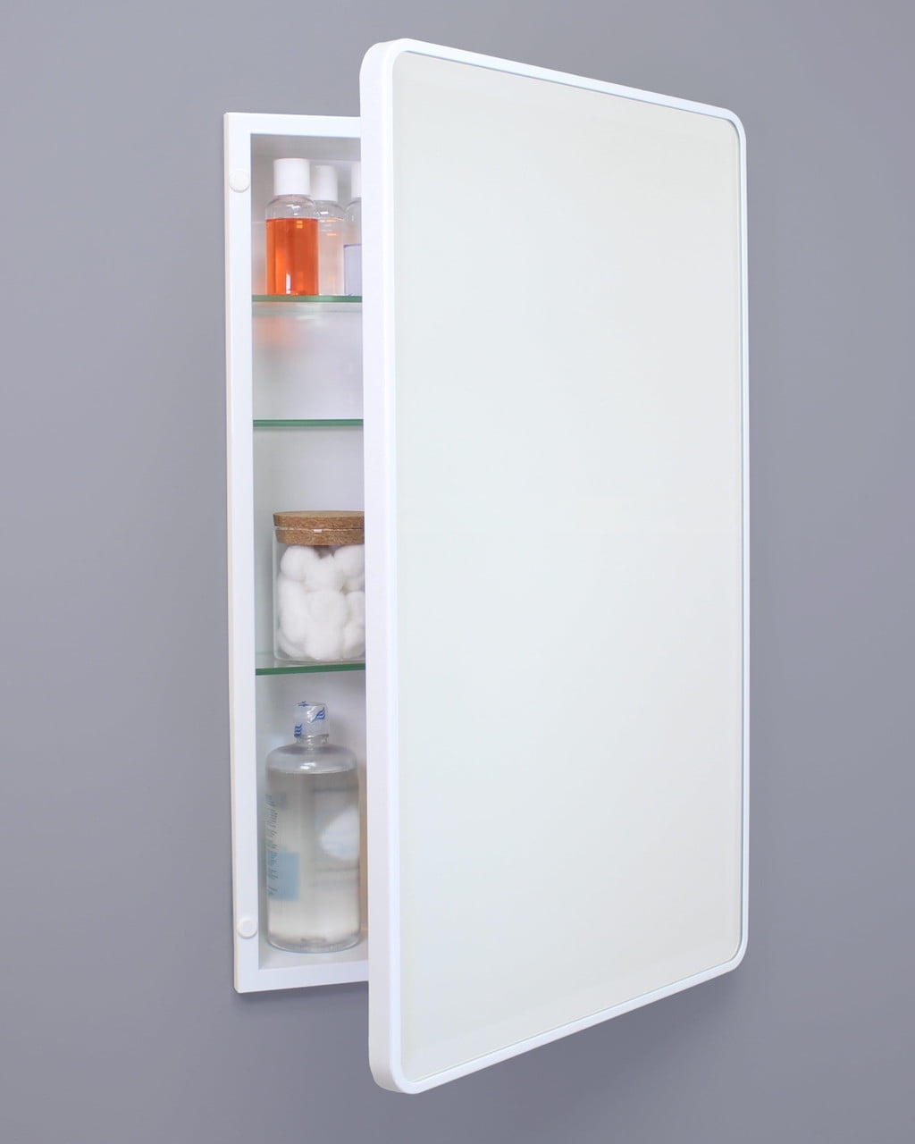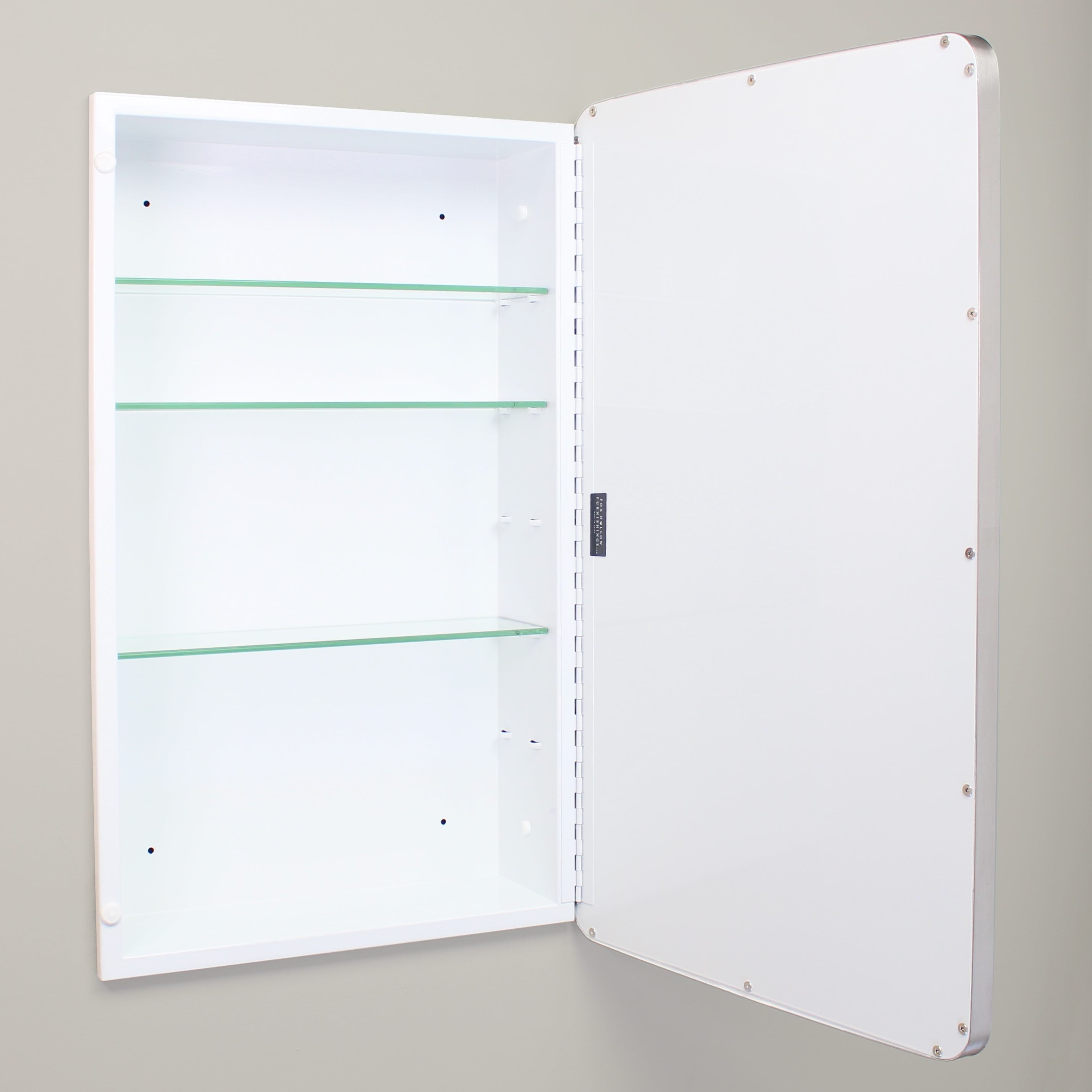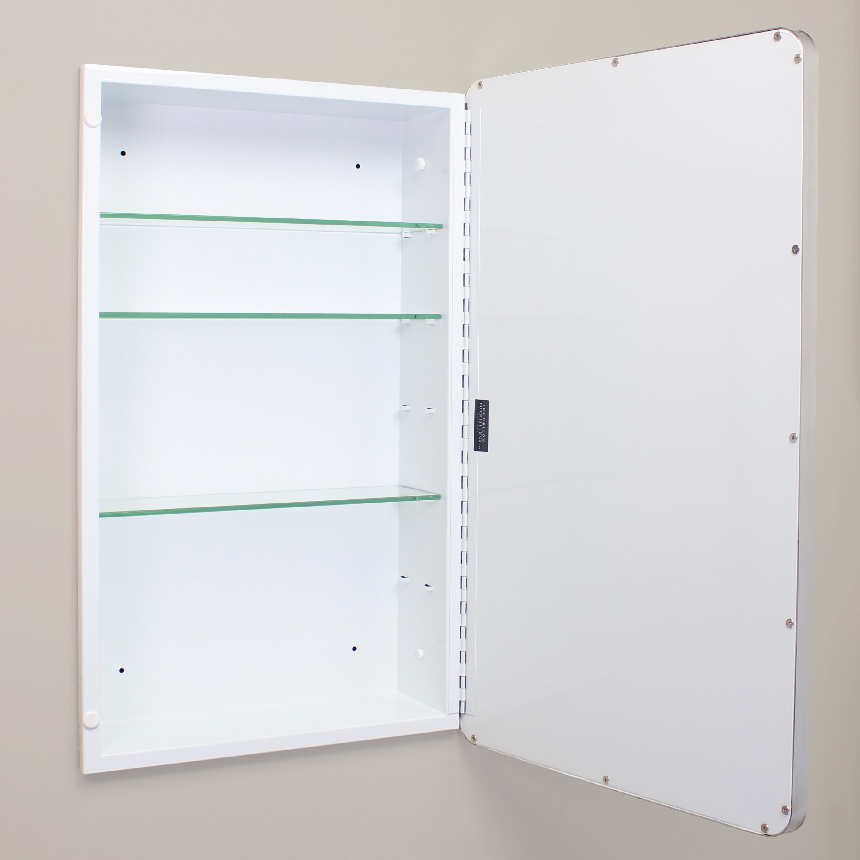 Transport yourself back in time to a vintage hotel or city apartment with the Austin Farmhouse Rounded Rectangle Recessed Bathroom Medicine Cabinet by Fox Hollow Furnishings. The rounded edges of the beveled mirror and clean overall design add a refined look that complements all modern baths and styles, from contemporary to rustic. Constructed from durable metals and glass, this recessed medicine chest is the last medicine cabinet you’ll ever need to buy.