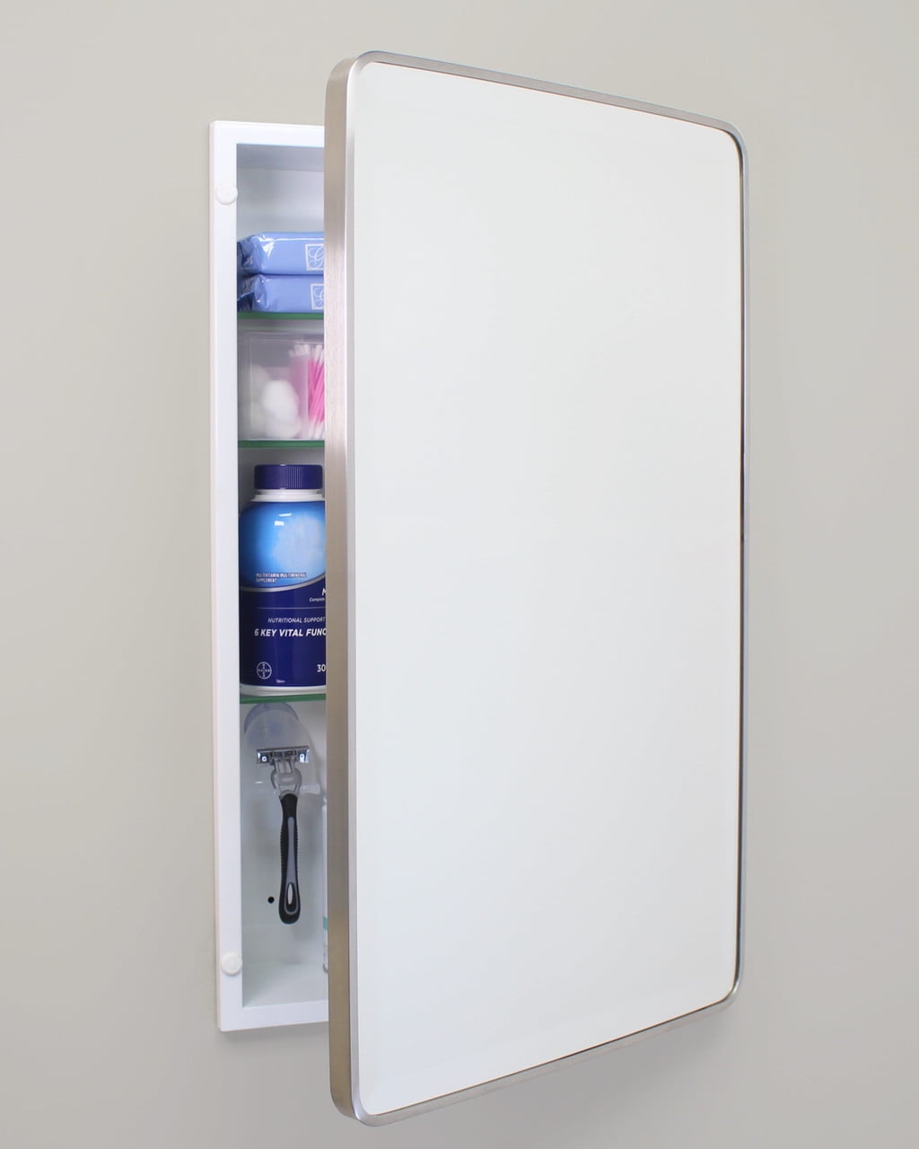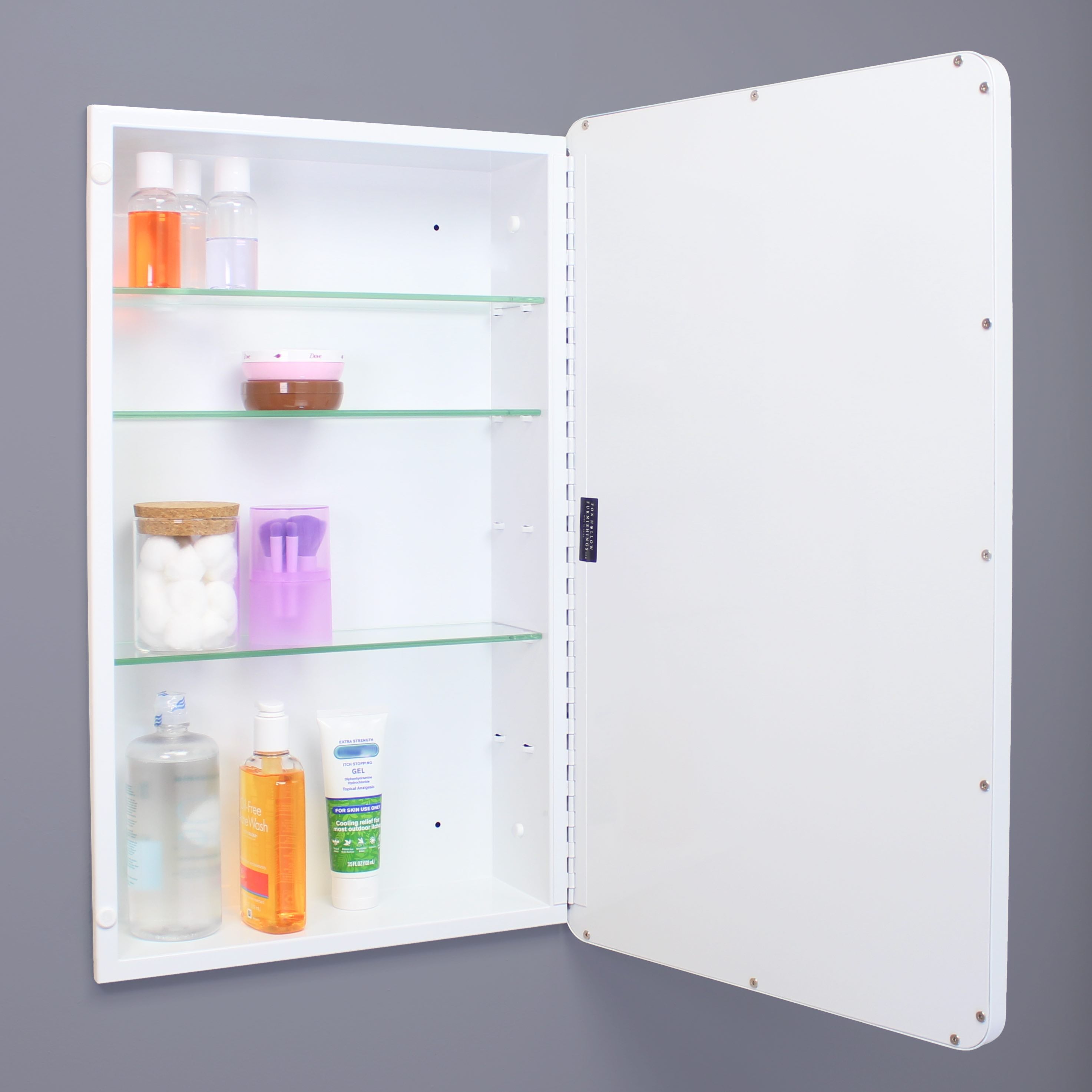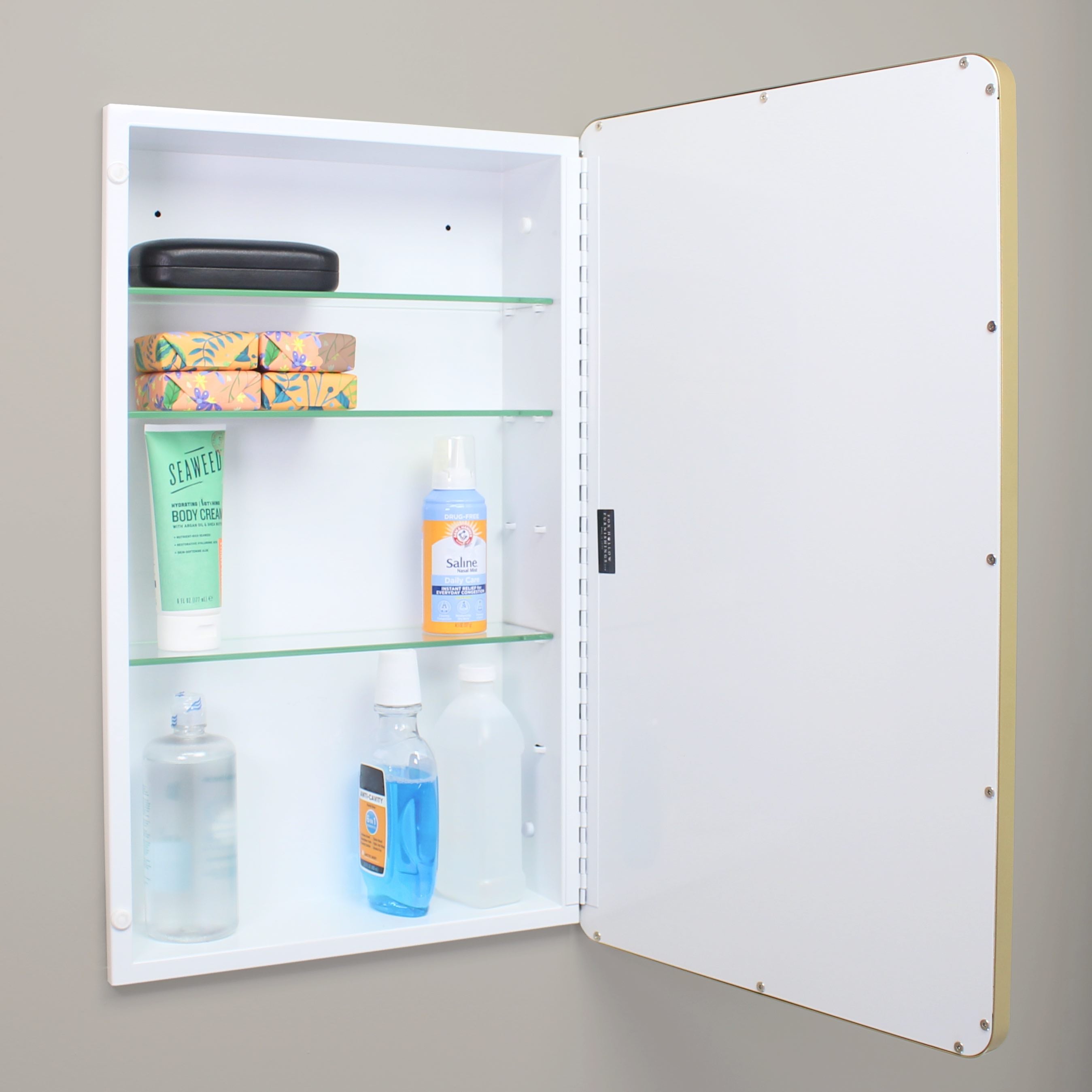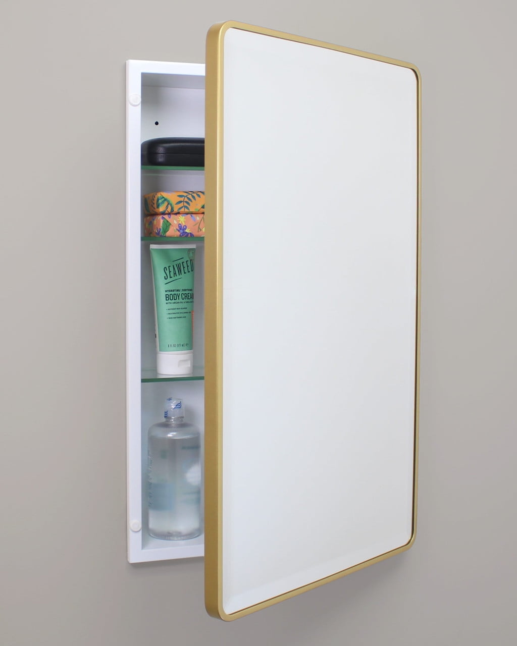 Transport yourself back in time to a vintage hotel or city apartment with the Austin Farmhouse Rounded Rectangle Recessed Bathroom Medicine Cabinet by Fox Hollow Furnishings. The rounded edges of the beveled mirror and clean overall design add a refined look that complements all modern baths and styles, from contemporary to rustic. Constructed from durable metals and glass, this recessed medicine chest is the last medicine cabinet you’ll ever need to buy.