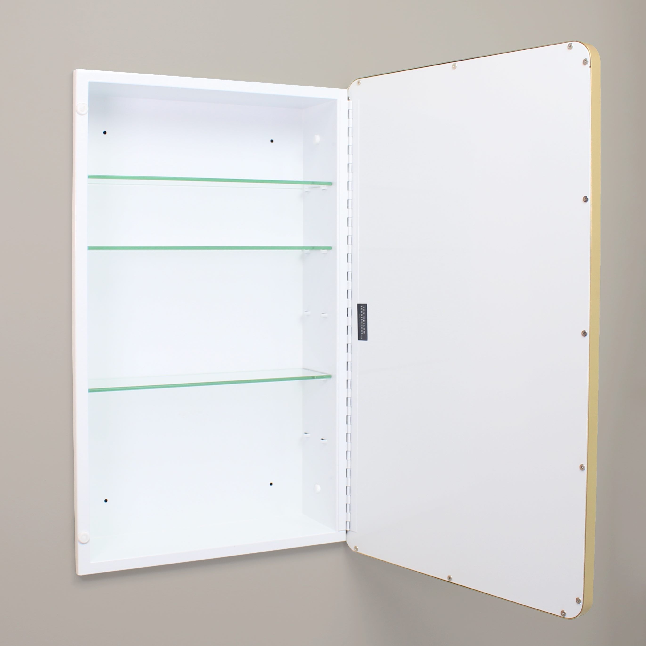 - completely reversible; mounts with door opening in either direction and mirror has a beautiful beveled edge