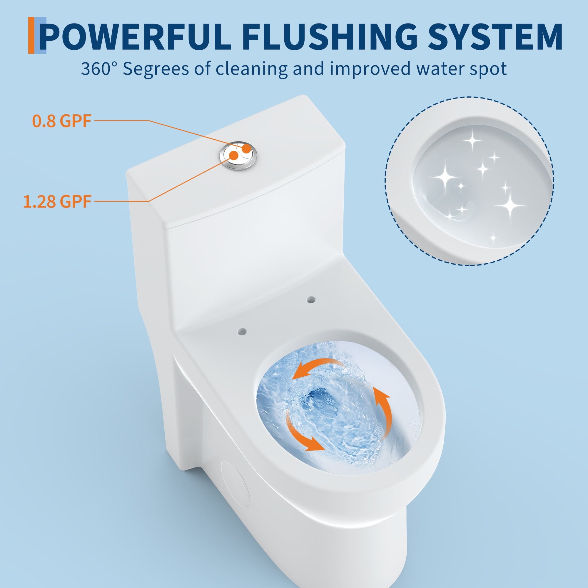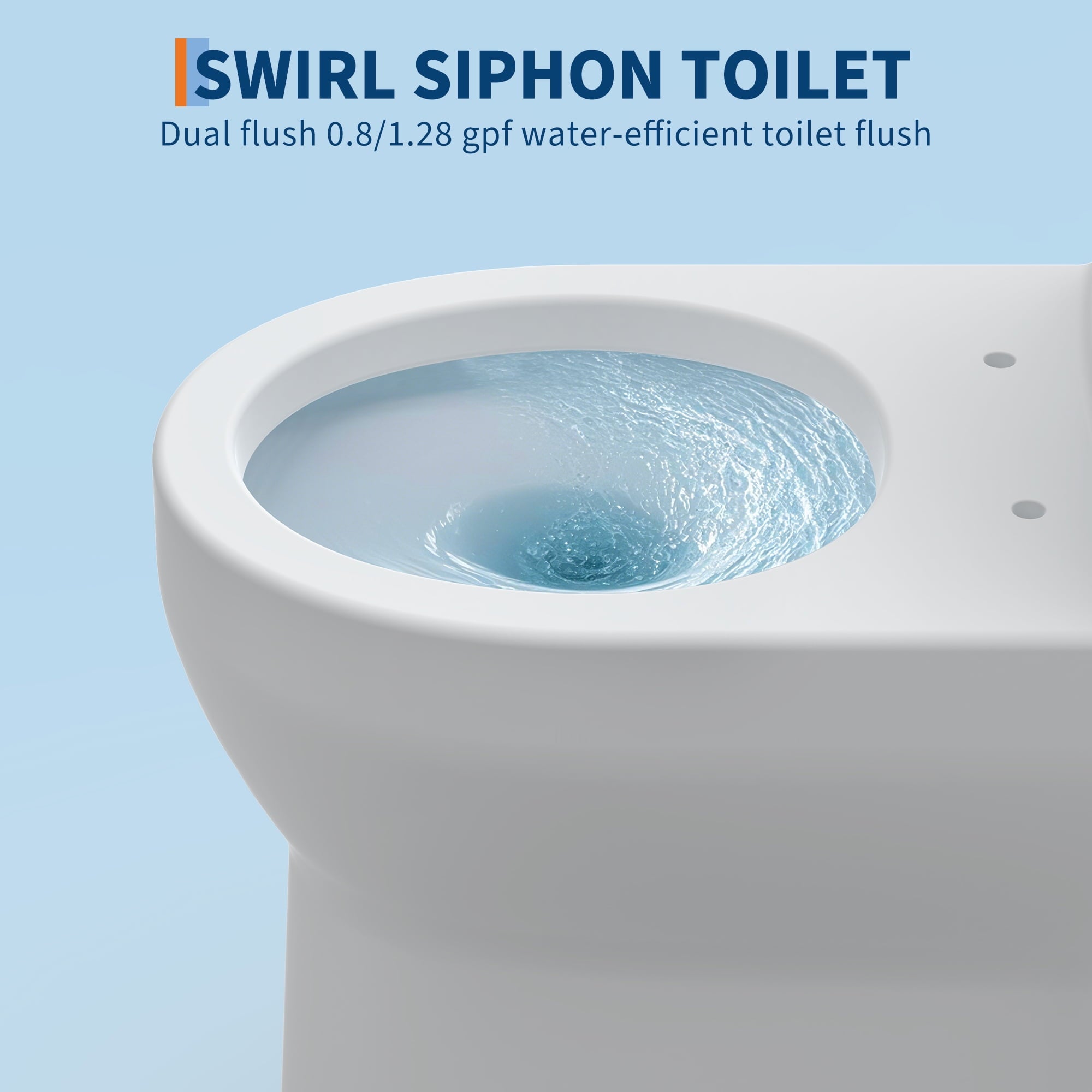 - Water Saving Performance: Siphon Flushing. Dual Flush 0.8/1.28 GPF. A 1.28-gallon flush provides significant water savings of up to 16,500 gallons per year, compared to a 3.5-gallon toilet, without sacrificing performance.