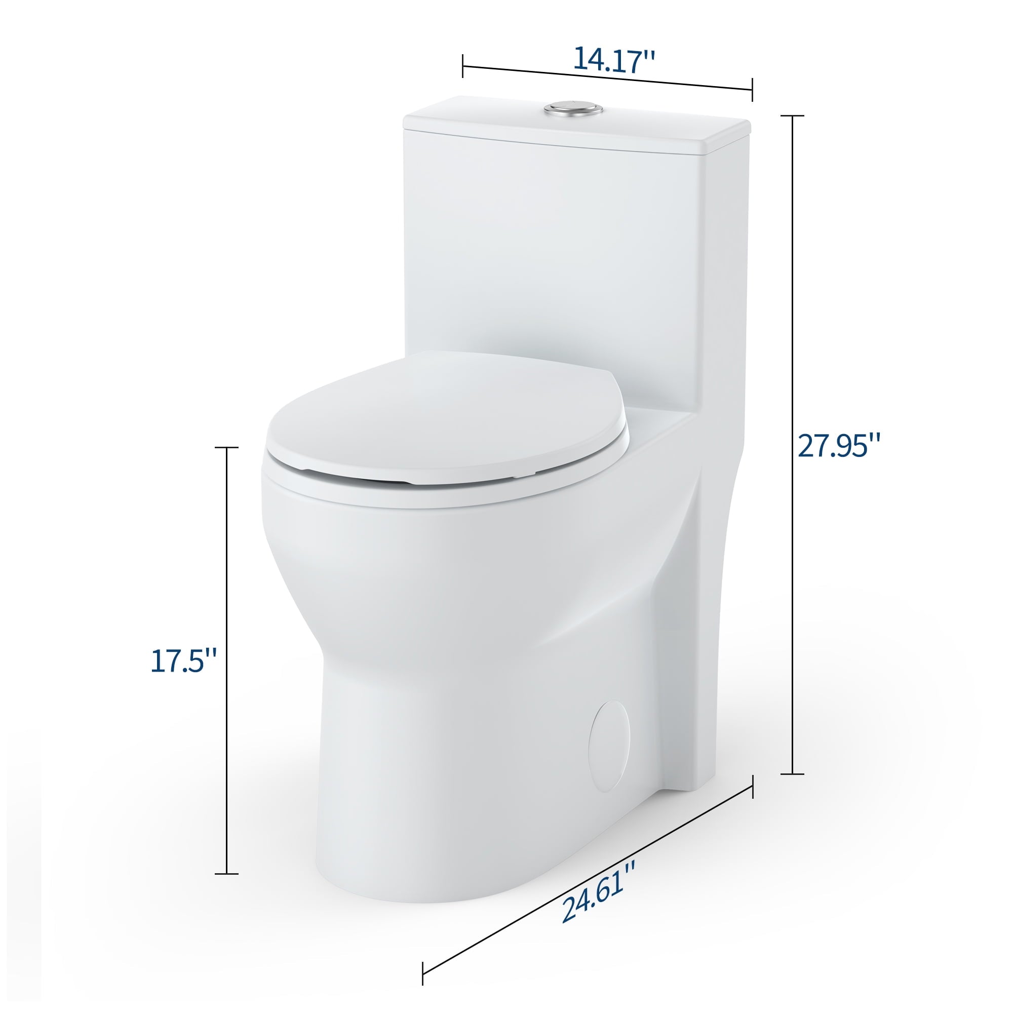 - Luxurious Toilets for Bathrooms: Seamless, one-piece toilets design makes a statement with its clean lines and low profile. This compact elongated toilet measures just 14.17 inches wide and 27.95 inches high (entire height), ensuring plenty of room for comfort in a bathroom space.