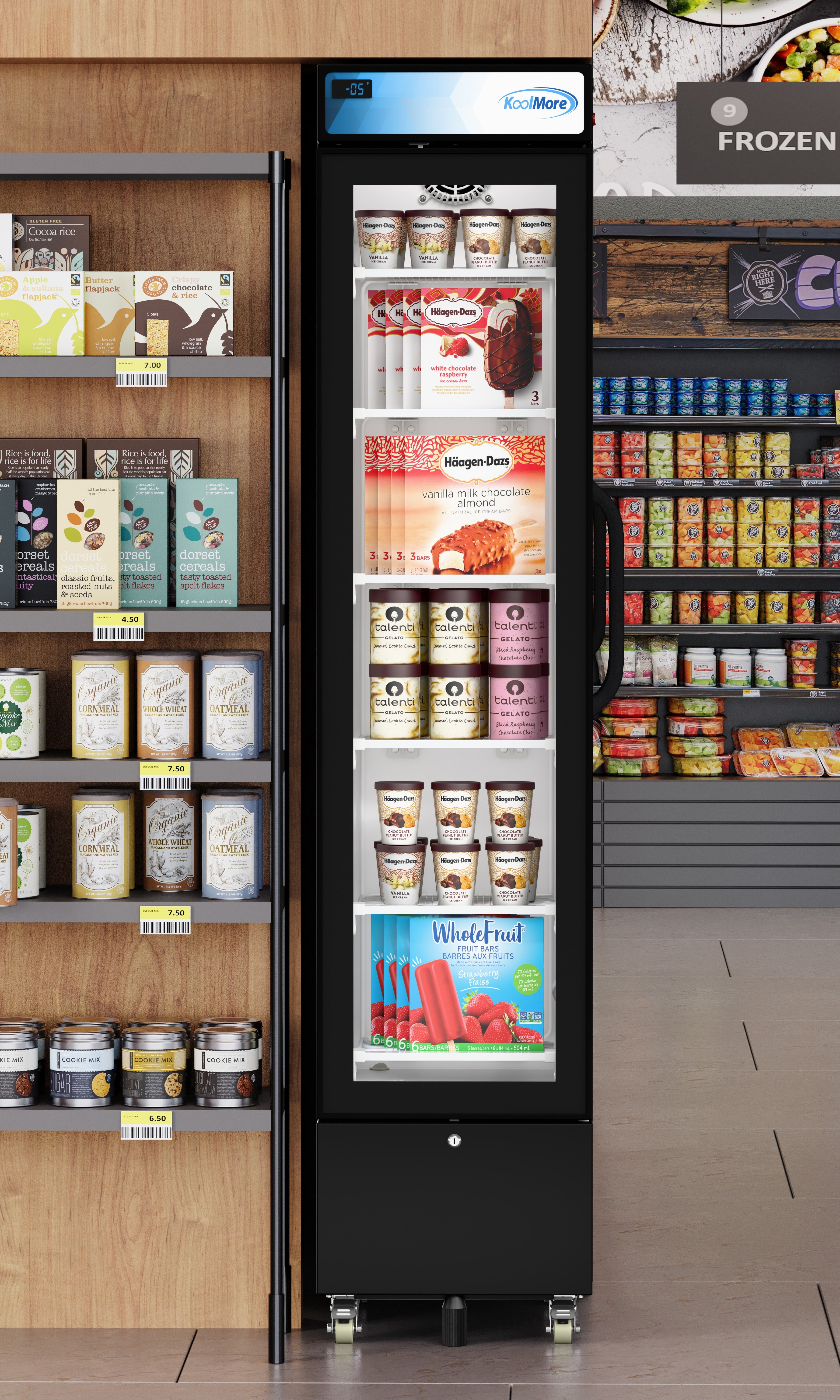 Introducing the KoolMore Commercial 17 In. Slim Merchandiser Freezer— a compact, efficient, and durable solution for demanding commercial spaces.