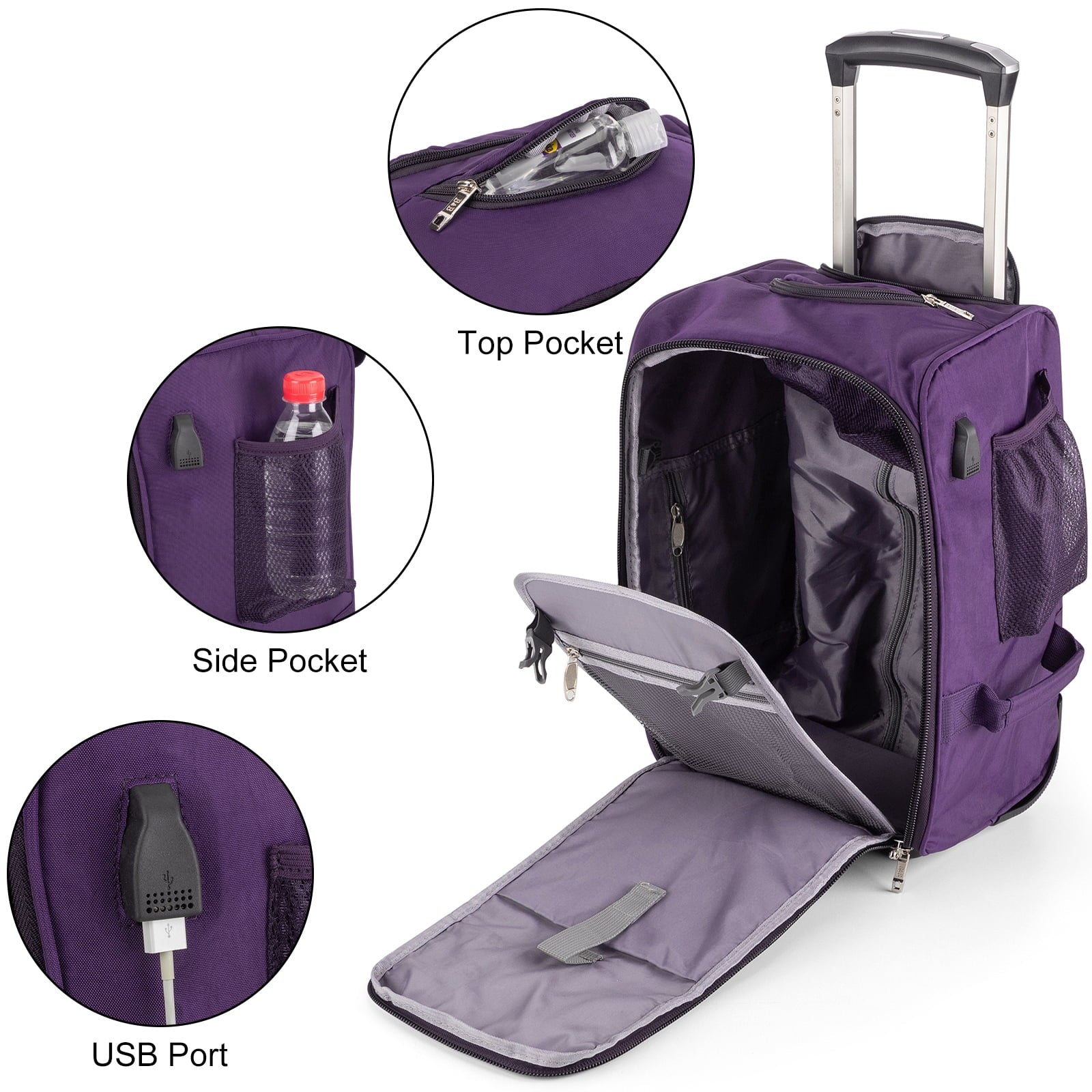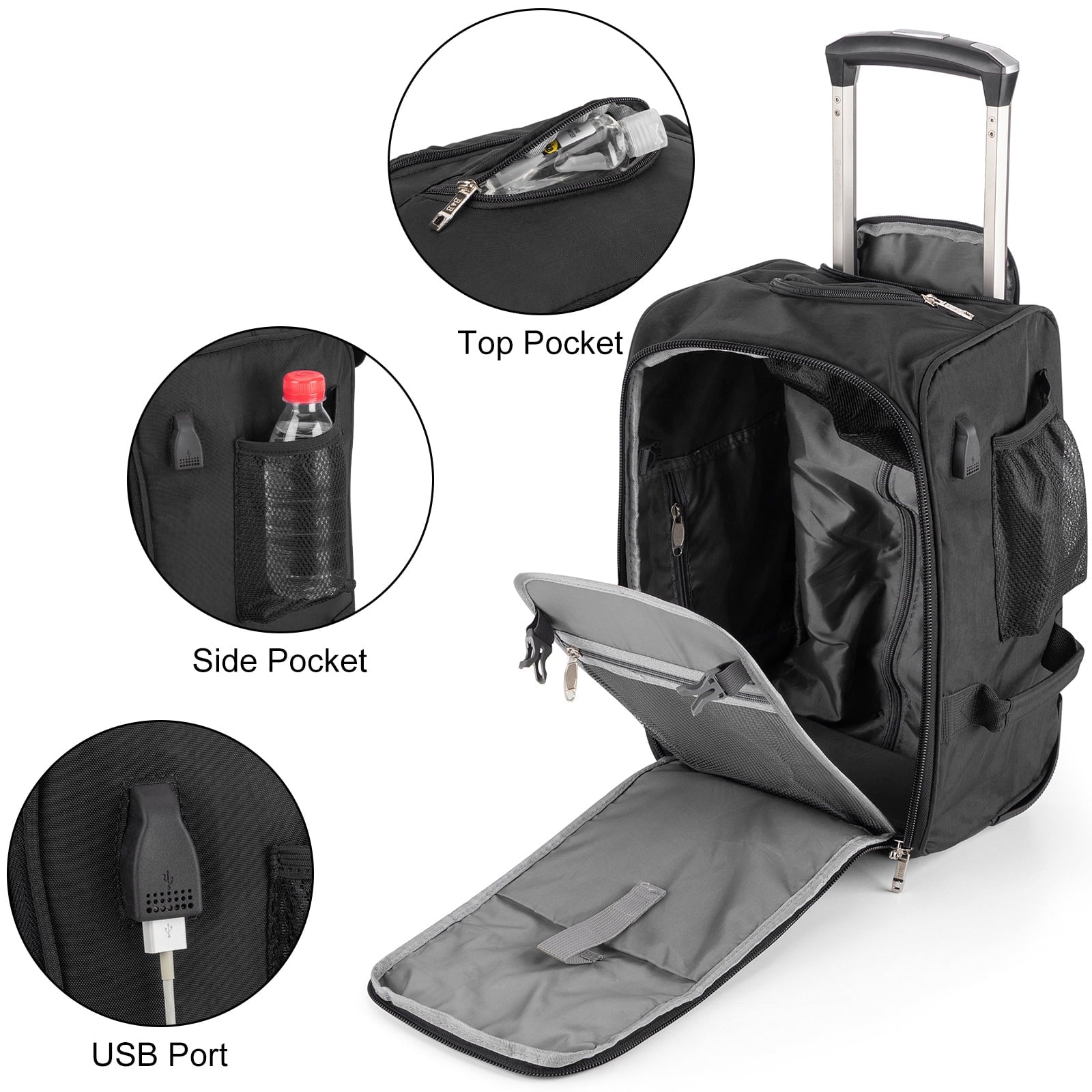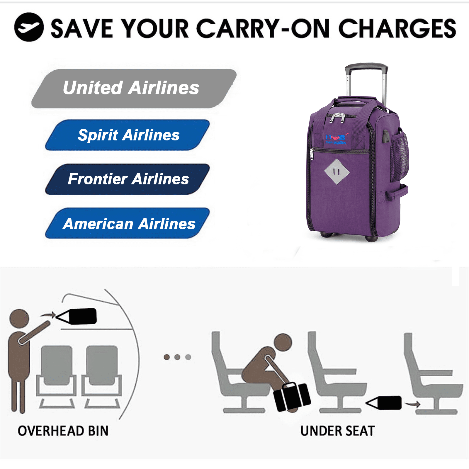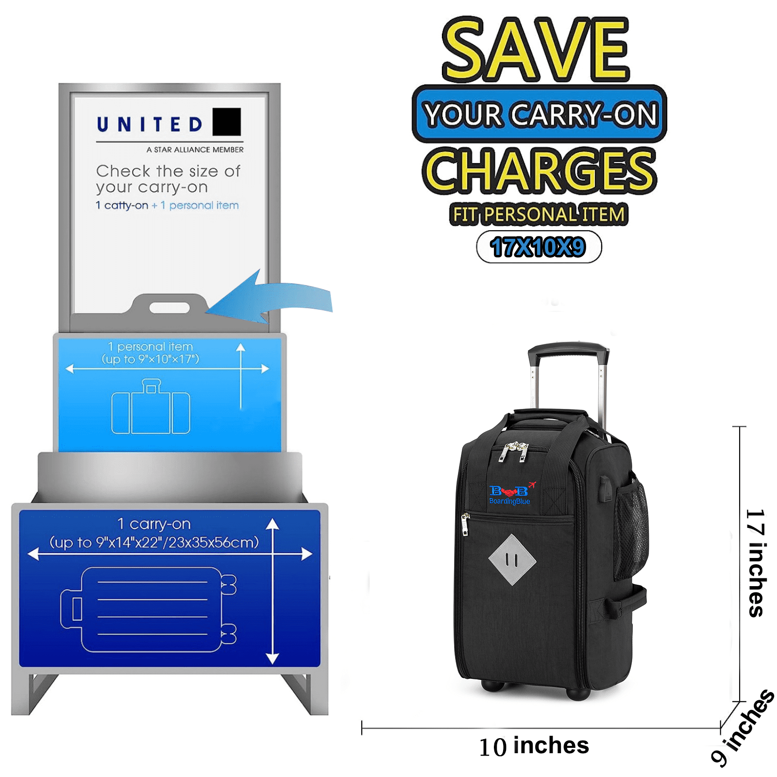 - 【SAVE $60-$80 PER FLIGHT CARRY ON CHARGES 】–– Our rolling bag Size 17 x 10 x 9 inch, perfect fit personal item size 17 x 10 x 09 inch limit of United Airline and Major Airlines including Spirit, Frontier, and American. It can be easily placed under seat to save your carry on charge around $60-$80 per flight.