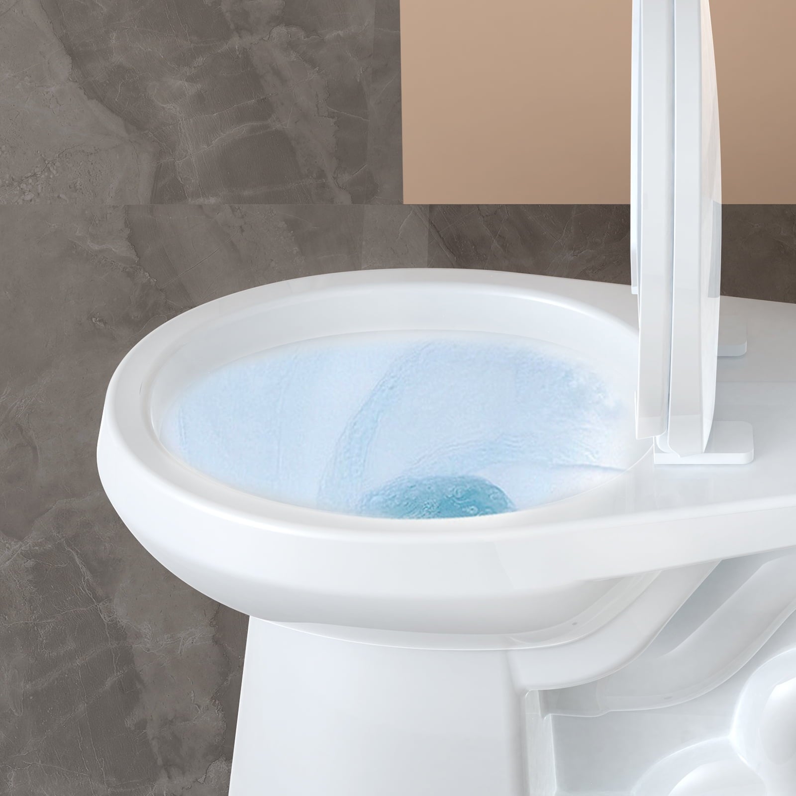 - Powerful Flushing Toilet: With Powerful Siphon Flushing, Toilet clog-free after using. High water levels discharge water rapidly and powerfully, a gentle press to flush out strong water flow; Hidden water holes 360-degree jet for spiral scrubbing, roll away dirt in hard-to-notice corners. Provides ample flushing power to ensure a clean, clog-free, leak-free, water-saving toilet