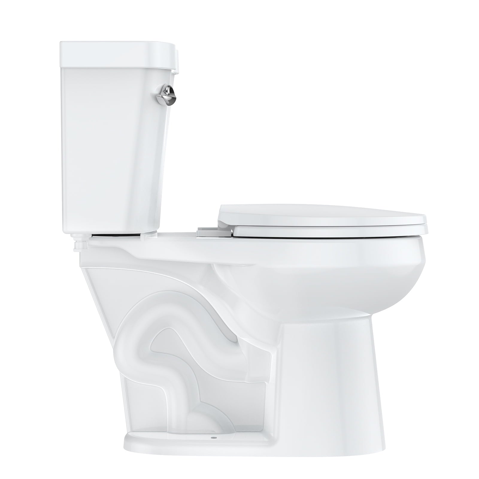 - Premium Two-Piece Toilet: This toilet for bathrooms is high temperature fired, porcelainised with low glaze absorption. Comes with a Chrome left-handed lever. Package includes toilet, soft close toilet seat, pre-installed flush valve, premium wax ring, floor bolts, and installation instructions. 30-day Limited warranty