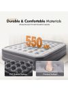 Built to Last: Leak-Proof & Sturdy for Daily Use:This isn’t a “one-trip” airbed. It’s made of heavy-duty PVC that resists punctures from rough camping grounds, pet claws, or accidental scrapes. Reinforced seams along the edges and bottom add extra strength, ensuring it holds air all night long—no mid-sleep deflation. Weighing just ~9 lbs, it’s easy to carry to campsites or move from storage to the guest room, but strong enough to support up to 330-440 lbs (check product specs for exact weight capacity) for most adults.