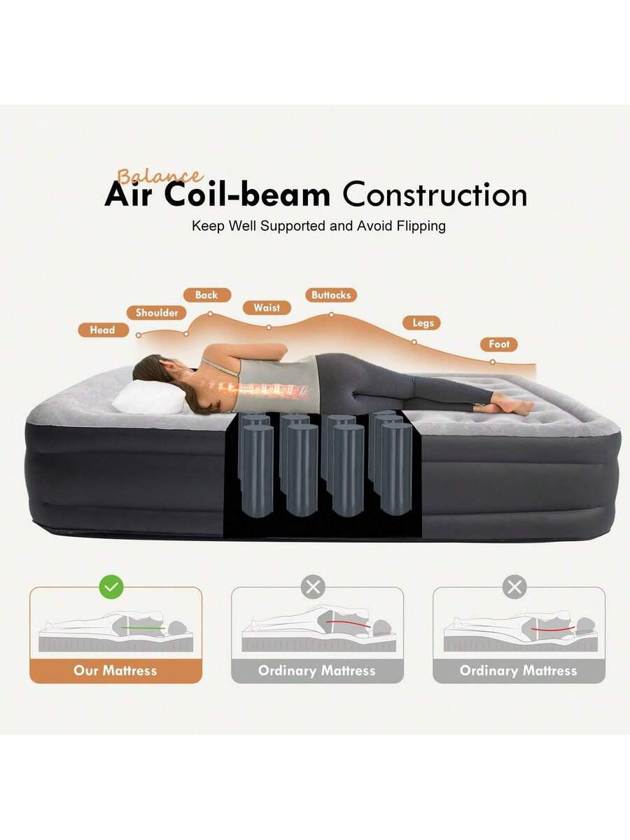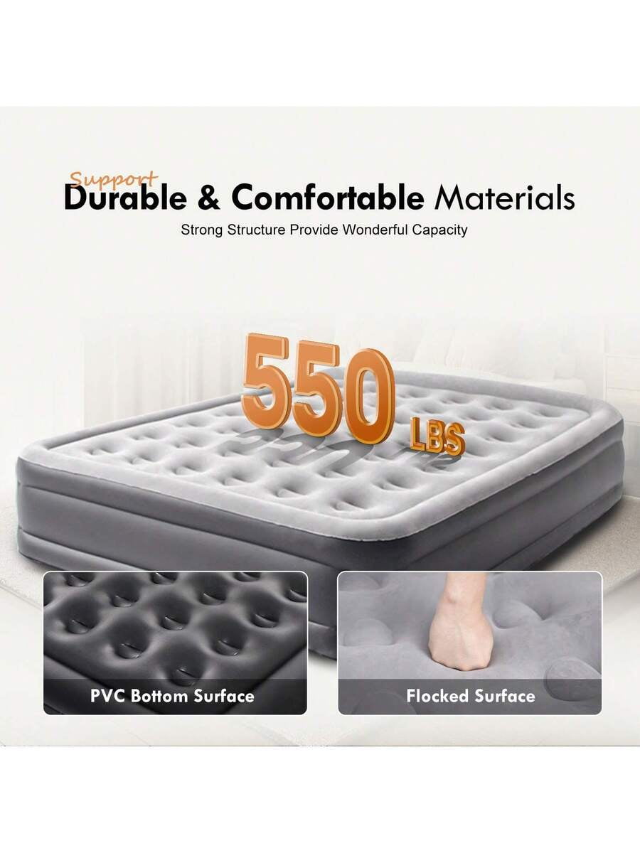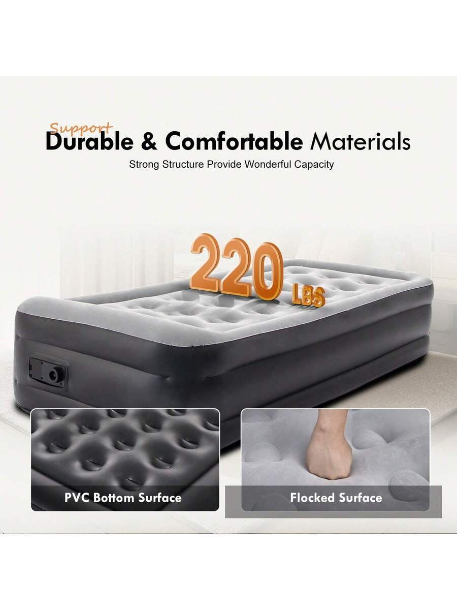 Durable Leak-Proof Design + Gray Neutral Style: Long-Lasting & Versatile: Made of puncture-resistant PVC with reinforced seams, it prevents air leaks even with nightly use. The sleek gray color blends seamlessly with indoor decor (guest rooms, apartments) and outdoor settings (camping, RV trips), avoiding the “cheap” look of bright airbeds—suitable for both temporary and regular use.