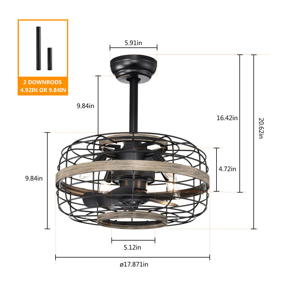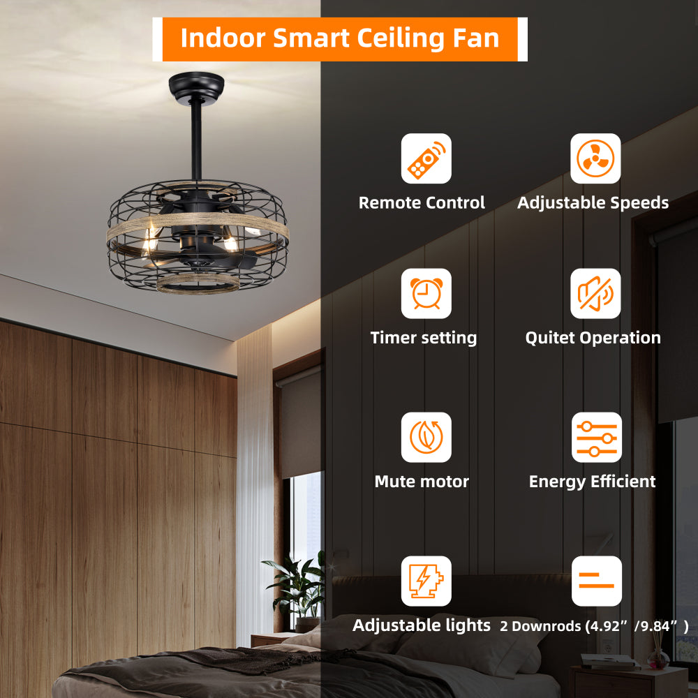 E12 standard base: This black ceiling fan requires 4 E12 candle style Edison or vintage LED bulbs (Bulb not included). Easier to install and replace light sources than other LED light fans.18” Farmhouse Ceiling Fans Light – Caged Ceiling Fan with Remote Control (3-Speeds Adjustable), Wood Rustic Enclosed Reversible Ceiling Fans for Bedroom , Living Room, Kitchen.