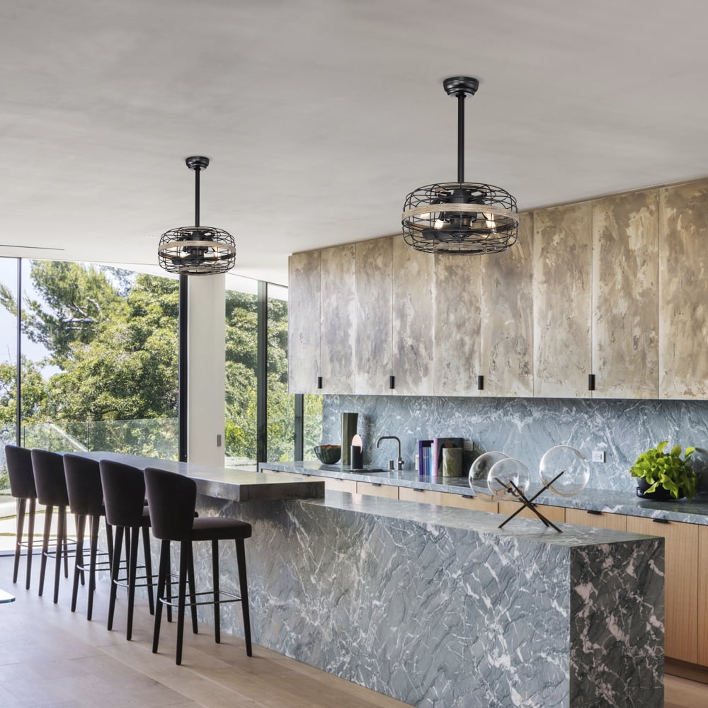 Small ceiling fan with lights: Design of 18″ caged ceiling fan with 5 small blades take up less space. Perfectly for small to medium space with low profile ceiling.