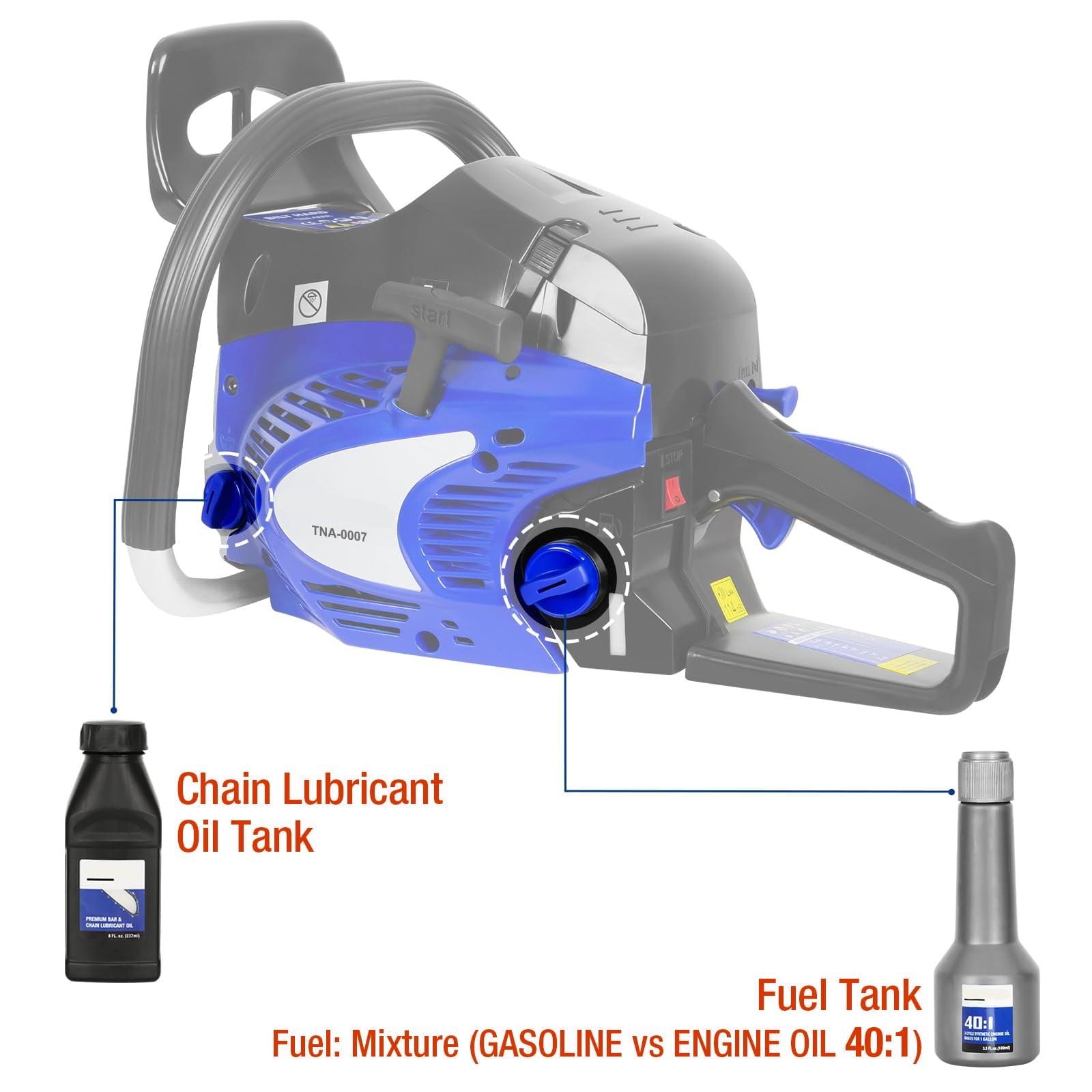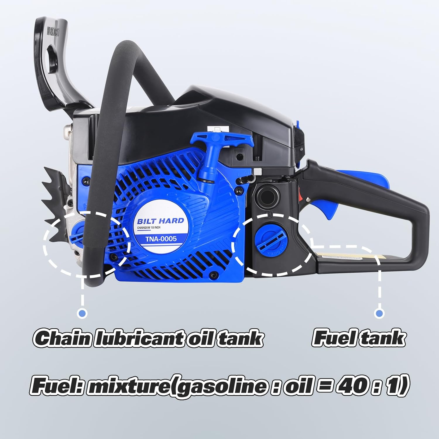 - Powerful & Efficient Cutting Performance: This gas chainsaw boasts a robust 46cc, 2-cycle engine, reaching 8500 rpm and delivering 1.9 Nm of torque and 2.4 HP. Perfect for tackling demanding cutting tasks with ease.