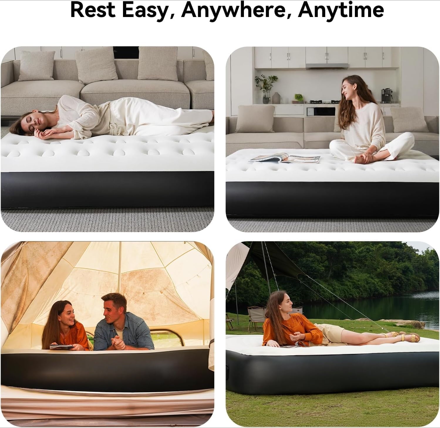 - Removable & Rechargeable Pump for Versatile Use: Equipped with a built-in 2000mAh rechargeable lithium battery pump, COMMOUDS air mattress inflates and deflates effortlessly without power source, making it perfect for for indoor and outdoor activities, like camping, guest stays and portable travel needs