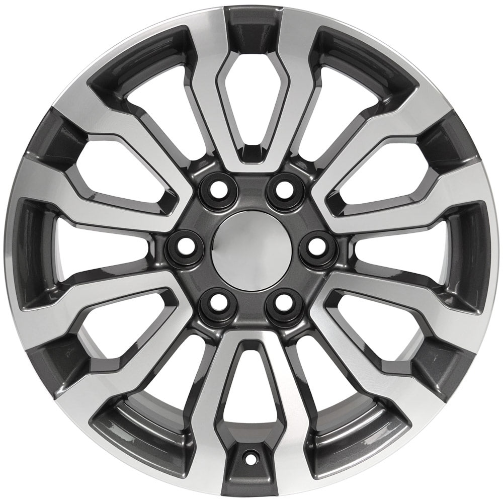 This CV35 replica wheel is a 18×8.5 Gunmetal machined face rim designed to fit the Chevrolet Silverado and GMC Sierra 1500 and other compatible vehicles. Please check our fitment tab for specific year-make-model applications and will-not-fit exceptions before ordering.Fits: Chevrolet Silverado 1500 1999-2021, GMC Savana 1500 2003-2014, Chevrolet Avalanche 1500 2002-2013, GMC Sierra 1500 1999-2021, Chevrolet Tahoe 1995-2021, Chevrolet Blazer 1992-1994, Chevrolet Suburban 1500 1988-2021, GMC Yukon 1992-2021, Cadillac Escalade 1999-2021, Chevrolet Express 1500 2003-2014, Chevrolet C2500 1988-2000. Fitment guaranteed for stock equipped vehicles only.