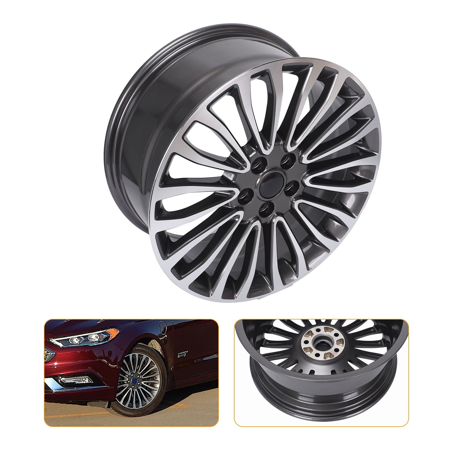 - 18″ Wheel Rim 18×8-inch 5-Lug Machined Grey, for 2017-18 Ford Fusion, Alloy Replacement Rim