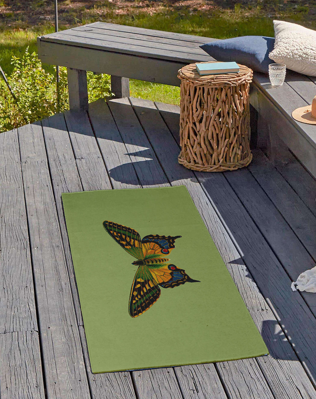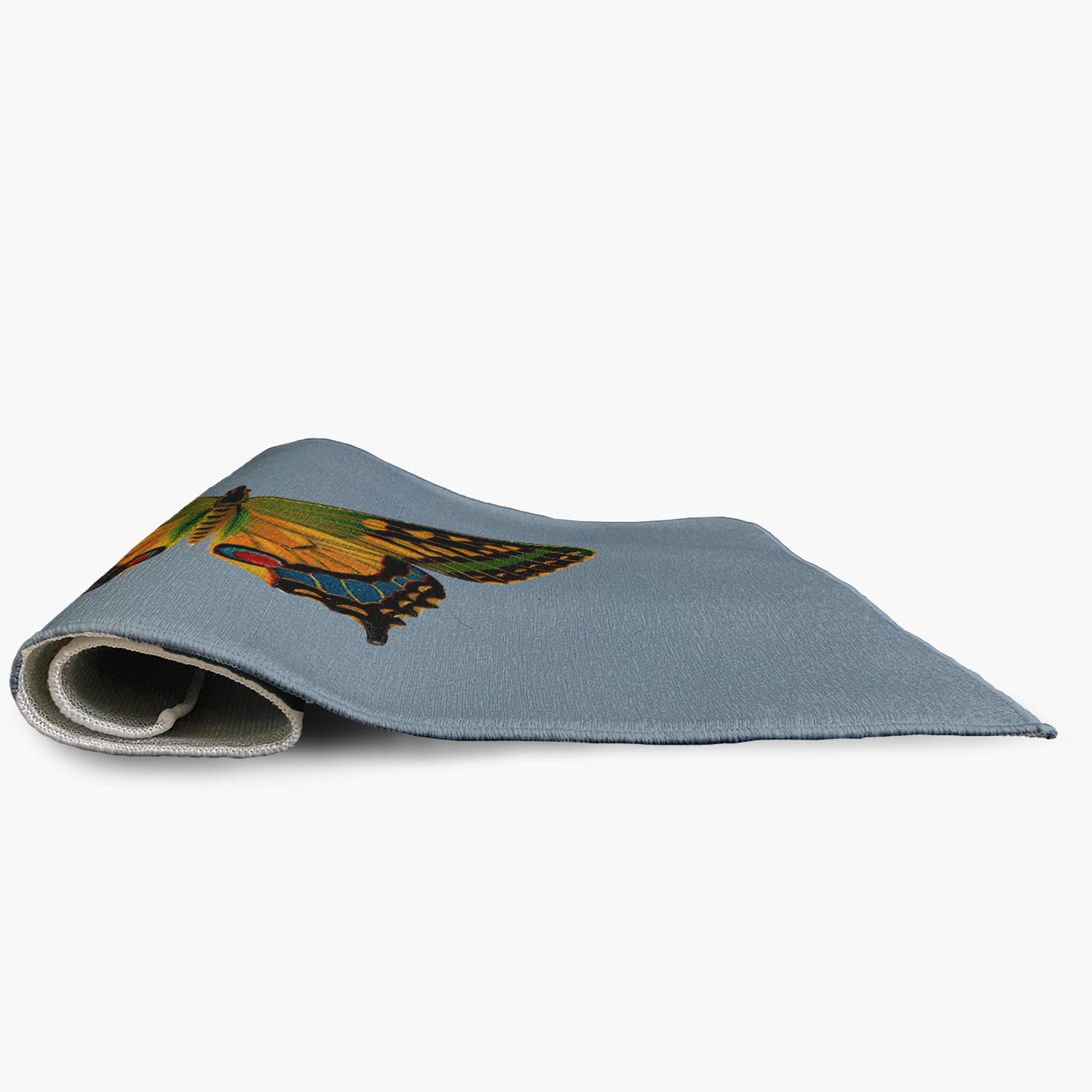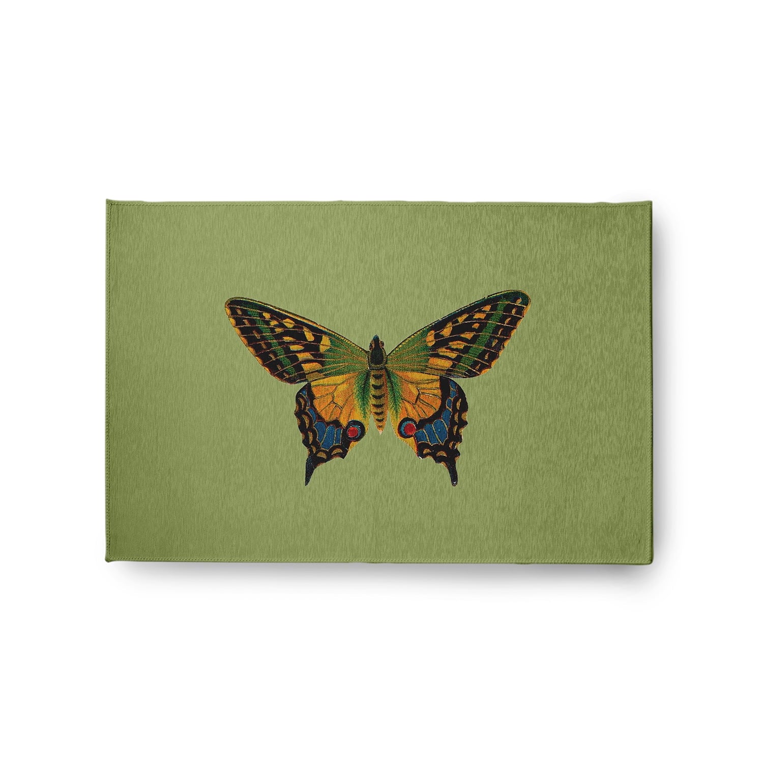 Let your decor take a walk on the wild side with our Simply Daisy 18″ x 30″ Dusty Smoke Blue Colorful Swallowtail Rug from our Animal Magnetism Collection. Everyone will delight in the space defining design brought to your porch, patio, kitchen, or bathroom by this area rug. The artistic and colorful design is printed on a soft polyester base with a skid resistant backing, making it a perfect way to add color, flare and personality to any indoor or outdoor space. To clean, use a mild soap and lay flat to dry.