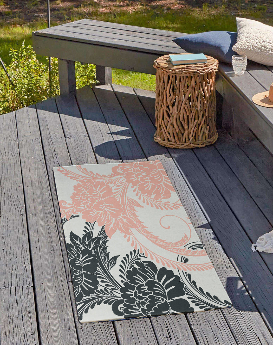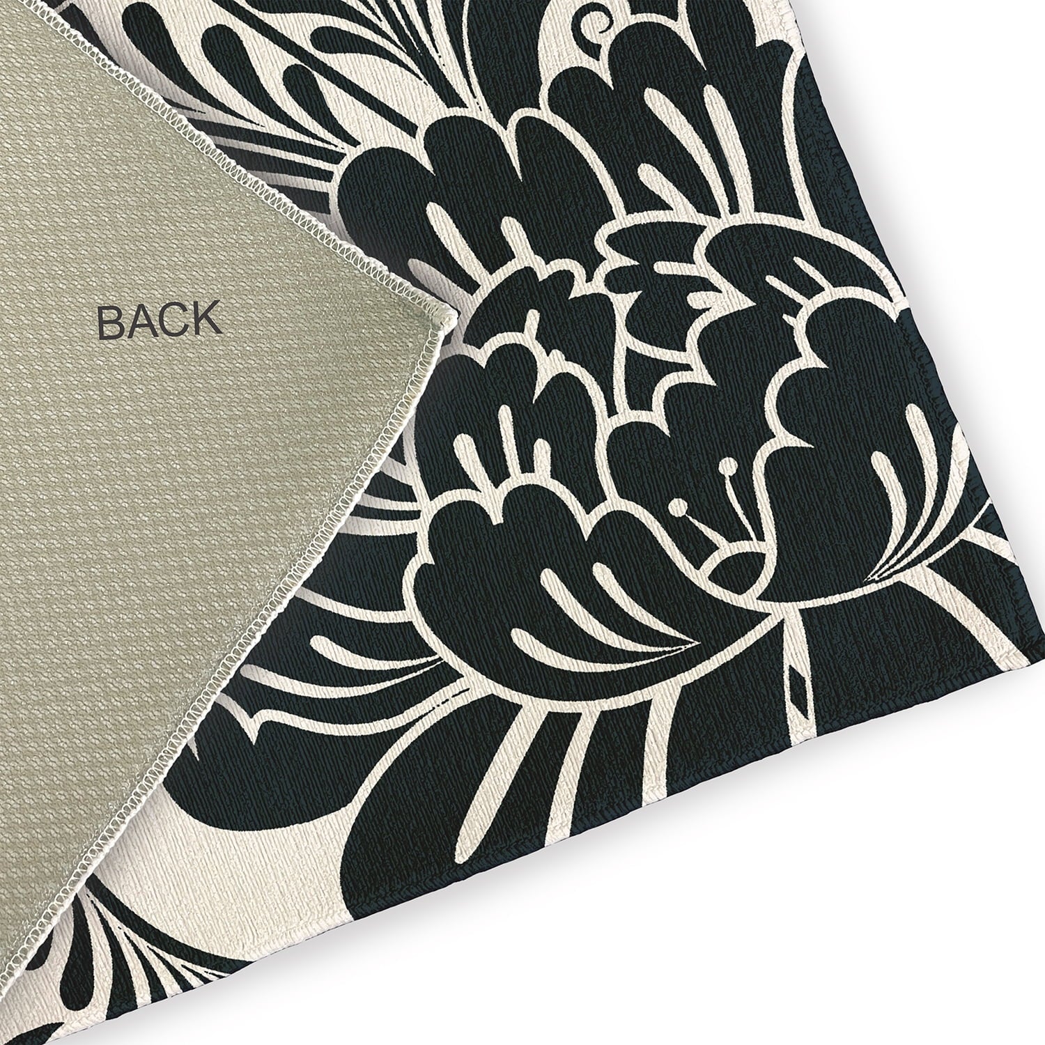 Add a floral touch to enhance your home decor with a Simply Daisy 18″ x 30″ Black Flower Flourish Rug from our Botanical Blooms Collection. Everyone will delight in the space defining design brought to your porch, patio, kitchen, or bathroom by this area rug. The artistic and colorful design is printed on a soft polyester base with a skid resistant backing, making it a perfect way to add color, flare and personality to any indoor or outdoor space. To clean, use a mild soap and lay flat to dry.