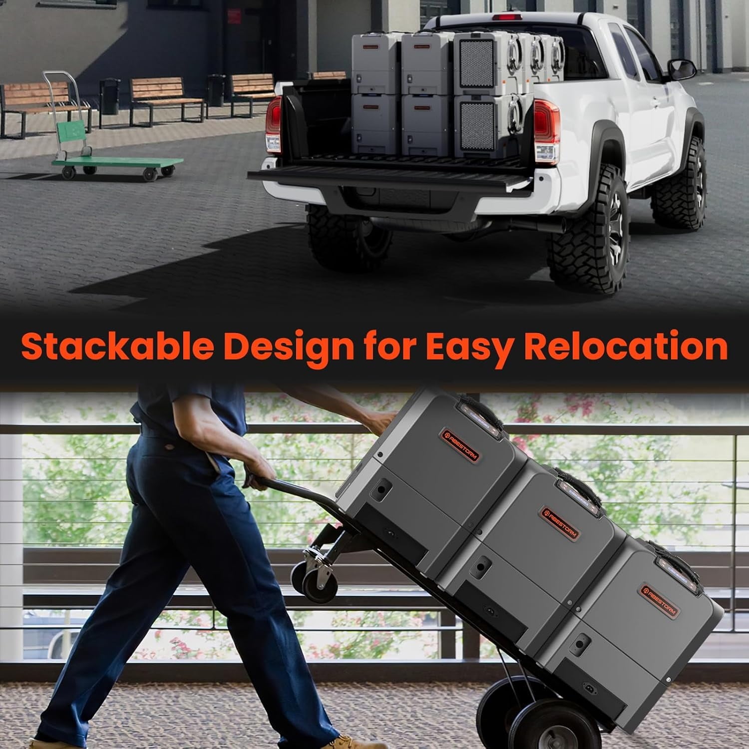 - Compact and stackable design with a size of only 22.8 x 13.7 x 17.3 inches (L*W*H) and a ridged handle for easy transport, making it suitable for crawl spaces, basements, warehouses, offices, factories, stores, and storage areas.