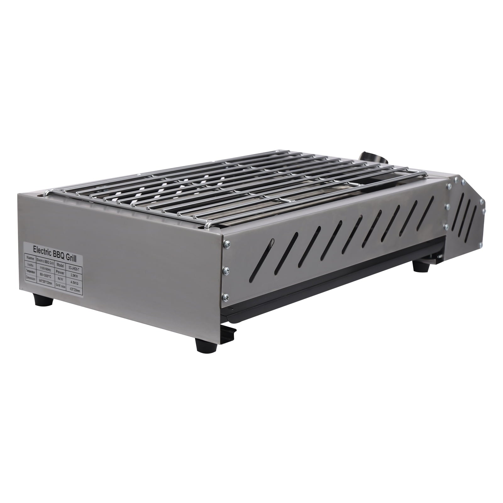Home Outdoor Electric Grills 1800W Electric BBQ Grill with Temperature Control, 21.3x11x4.7in Cooking Area, Stainless Steel, Ideal for Parties & Outdoor BBQs