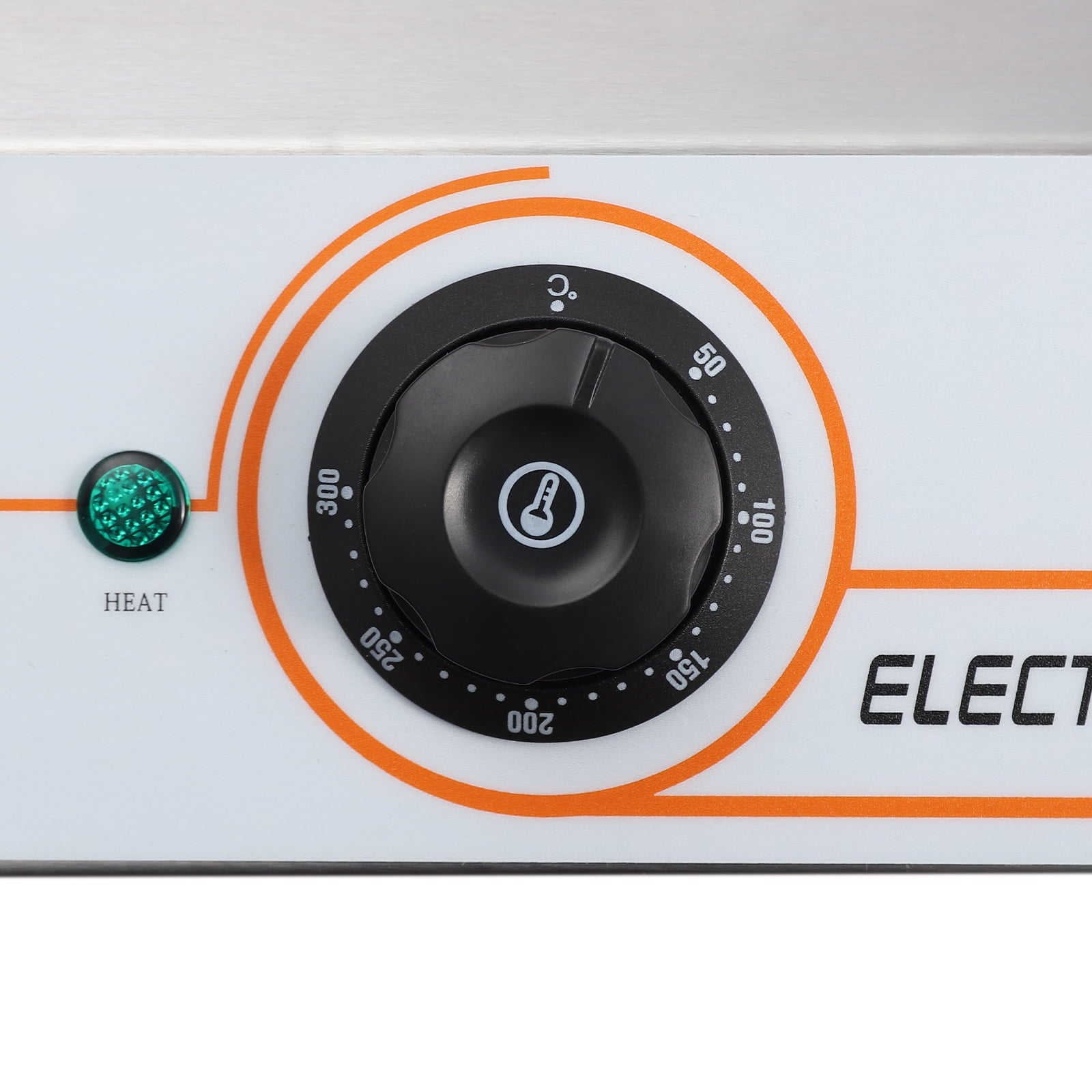 • High Efficiency: The 1800-watt power and high-quality U-shaped heating tubes heat food quickly and evenly, and you can also conveniently adjust the temperature (122-572°F) with the rotary knob to turn ingredients into mouth-watering flavours and ensure an efficient grilling process.