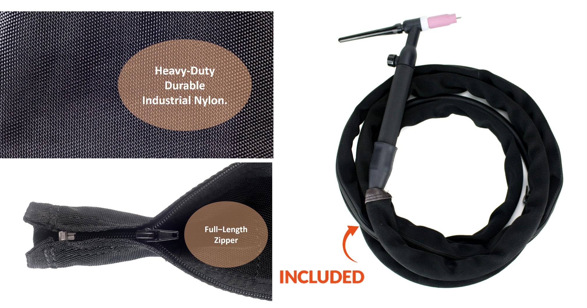 350 Amp fully assembled 18 Series Water-Cooled TIG Torch with Valve, designed for welders with or whithout Gas SolenoidChoose between Dinse 35-70 or Stud Connectors. Dinse connector comes with 18″ water hose with 5/8″-18 LH Male Water Fitting and Stud Connector has 5/8″-18 LH Female Water Fitting (Please check Picture #2 and #3 for dimensions and Table in Picture #6 for a list of compatible welders)Available with 12.5 or 25 feet Cable and Straight or Flexible Head. Torch head with Valve for a manual closure of argon flow.Accessory Kit and Heavy-Duty Nylon Cable Cover are IncludedOther accessories might be needed to connect the argon and water lines to the flowmeter and water recirculator. See picture #7 for additional items available.