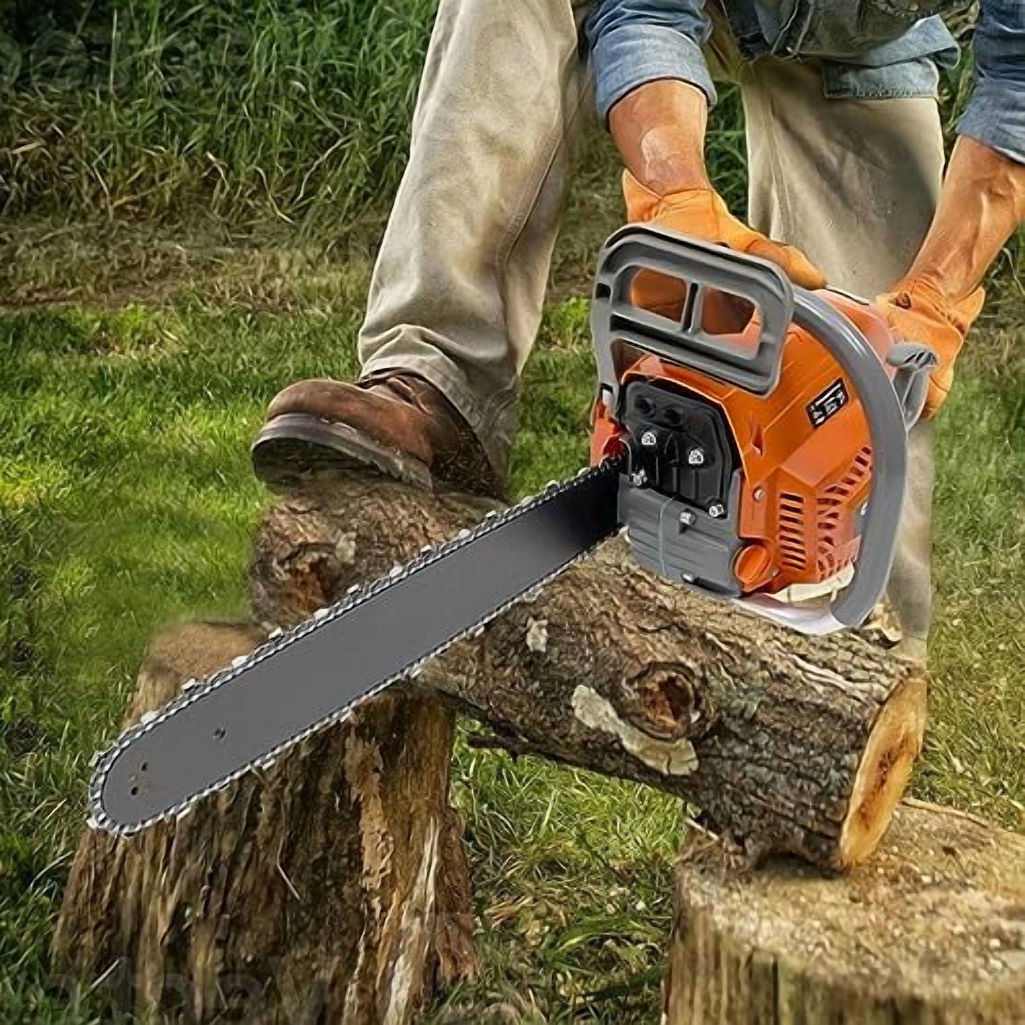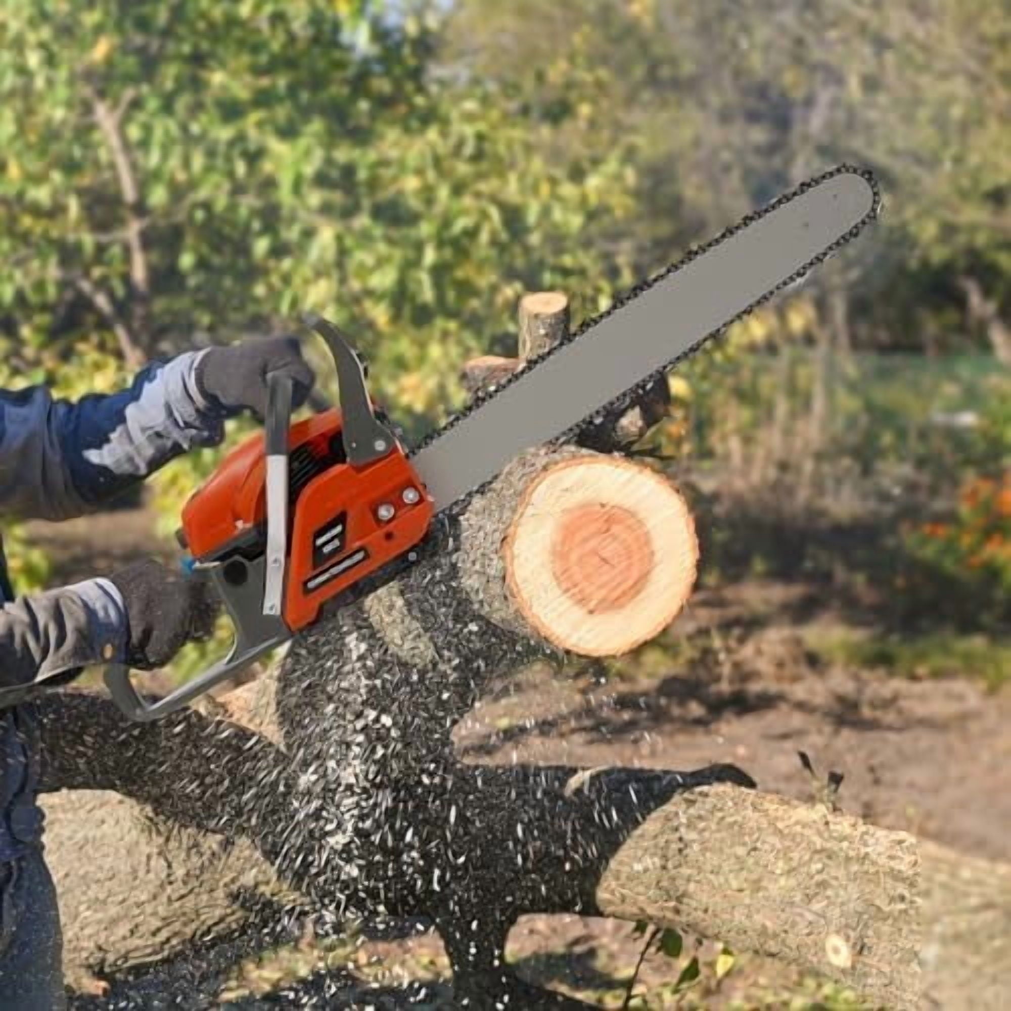 🌲【4.4 HP Gas Chainsaw】It Uses a High-stiffness Sharp Chain to Ensure Smoother Cutting. with a Chain Speed of up to 10,500 Rpm, It Can Easily Cut Large Wood up to 8 Inches in Diameter in a Short Period of Time.