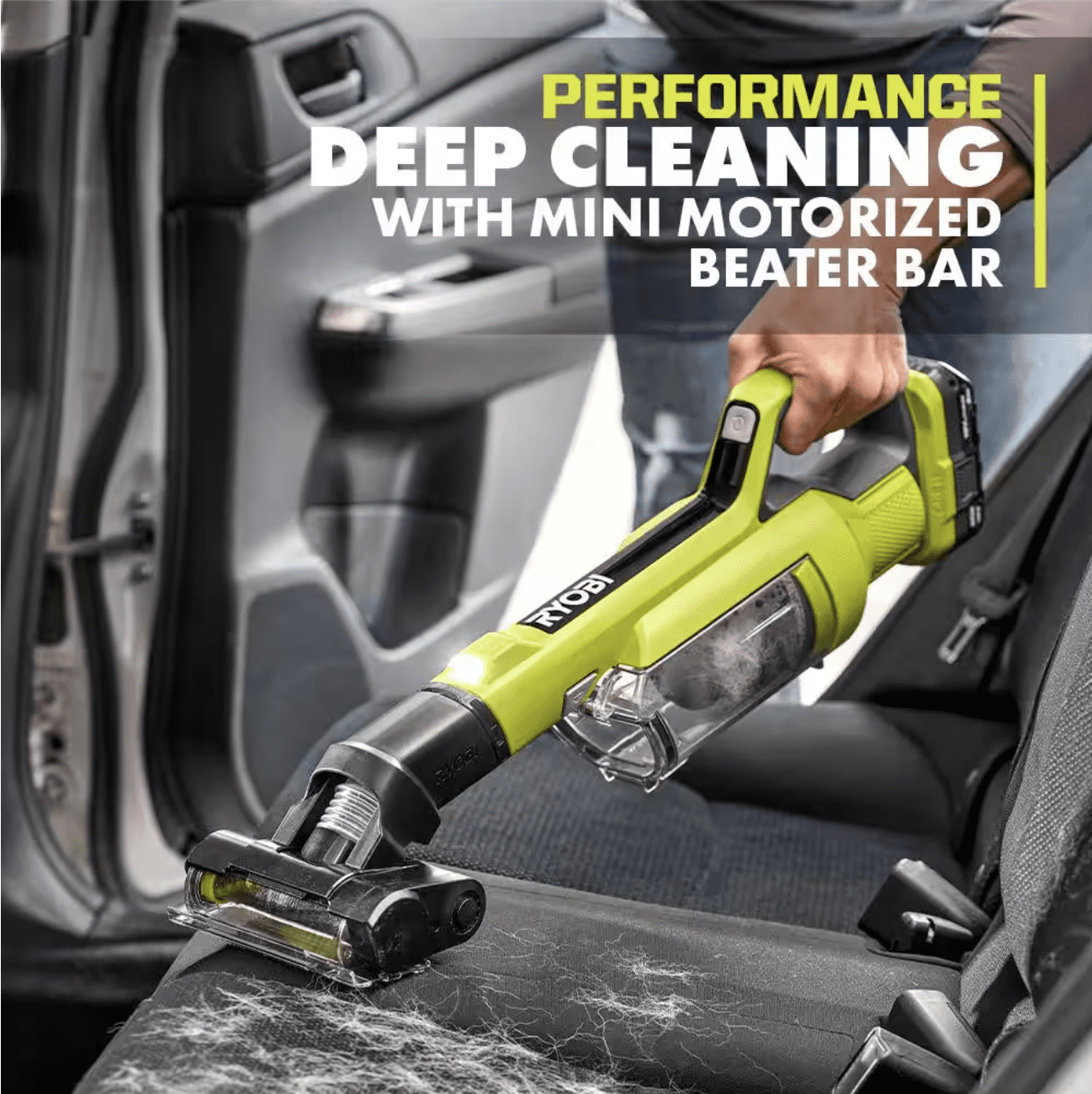 About This Product: Ryobi PCL700B Expand your Ryobi 18V ONE+ System with the 18V ONE+ Powered Brush Hand Vacuum. This hand vacuum delivers powerful performance with cordless convenience. The mini motorized beater bar is a powered brush accessory that agitates debris, giving you confidence that you’re getting a deep clean. This accessory allows you to easily clean your stairs, upholstery, car seats, and more. The pivoting head keeps close contact to surfaces, allowing you to clean at different angles. For easy cleaning and maintenance, remove the roller bar with the turn of a coin or slotted screwdriver. Use the beater bar’s scissor groove for hassle-free hair removal. This hand vacuum features LED lights for increased visibility while cleaning. The included crevice tool accessory is ideal for cleaning hard to reach areas like underneath car seats and in between furniture cushions. The dust brush accessory is gentle for cleaning air vents, windowsills, and delicate surfaces. The filter is made with HEPA media and should be replaced every 3-6 months to maintain maximum performance (model numbers A32HF00 and A32F05). Best of all, it is part of the Ryobi 18V ONE+ System of over 300 Cordless Products that all work on the same battery platform. This 18V Powered Brush Hand Vacuum is backed by the Ryobi 3-Year Manufacturer’s Warranty and includes a Mini Motorized Beater Bar, Crevice Tool, Dust Brush, HEPA Filter, and Operator’s Manual. Battery and charger sold separately.