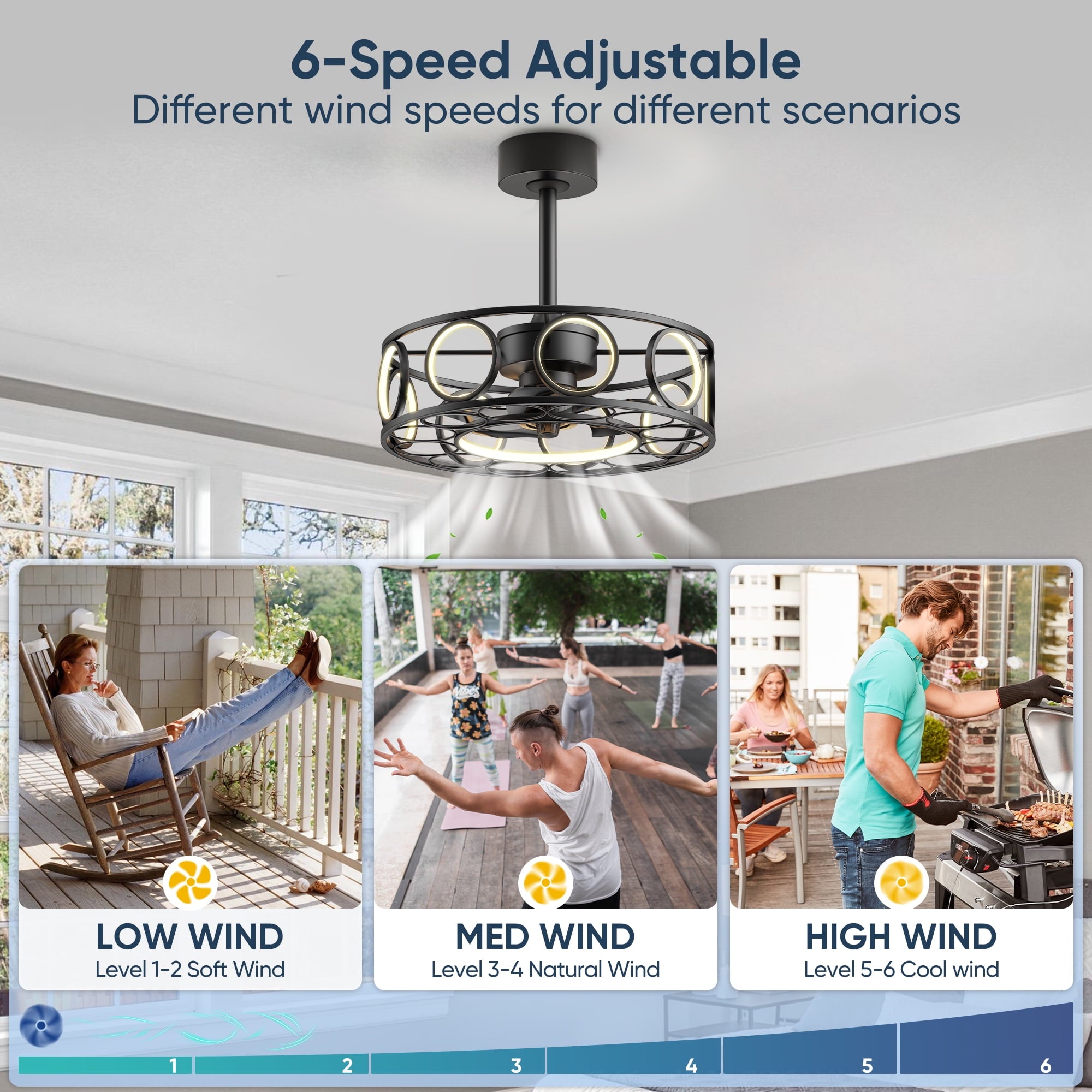 - Reversible ceiling fans: Black ceiling fan is usable in all seasons, reverse wind could be used for circulating the stagnant air indoor in winter, and powerful forward wind will cool room down quickly in summer.