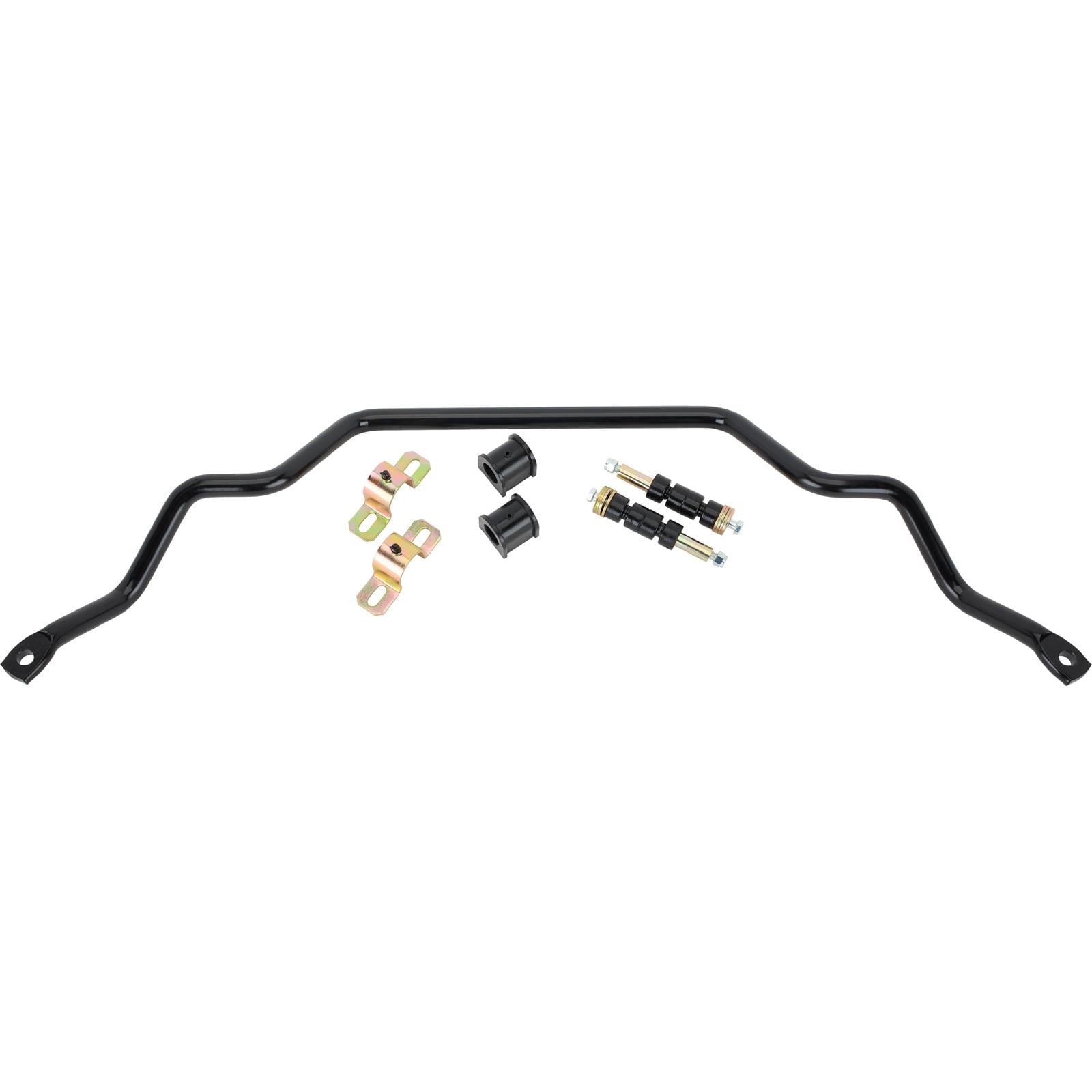 Achieve flatter cornering. Complements rear sway bar to reduce understeer and gain more neutral handing. Adds to cornering stability at speed. Solid steel 1″ diameter bar. Includes polyurethane bushings for increased responsiveness. Black powder coated finish. Corrosion resistant zinc plated hardware included.