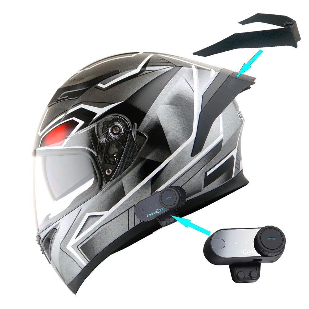 - DOT Approved; Size L (57-58 CM,22.4/22.8 Inch); Helmet comes with spoiler and motorcycle bluetooth headset as bundle (installation required);