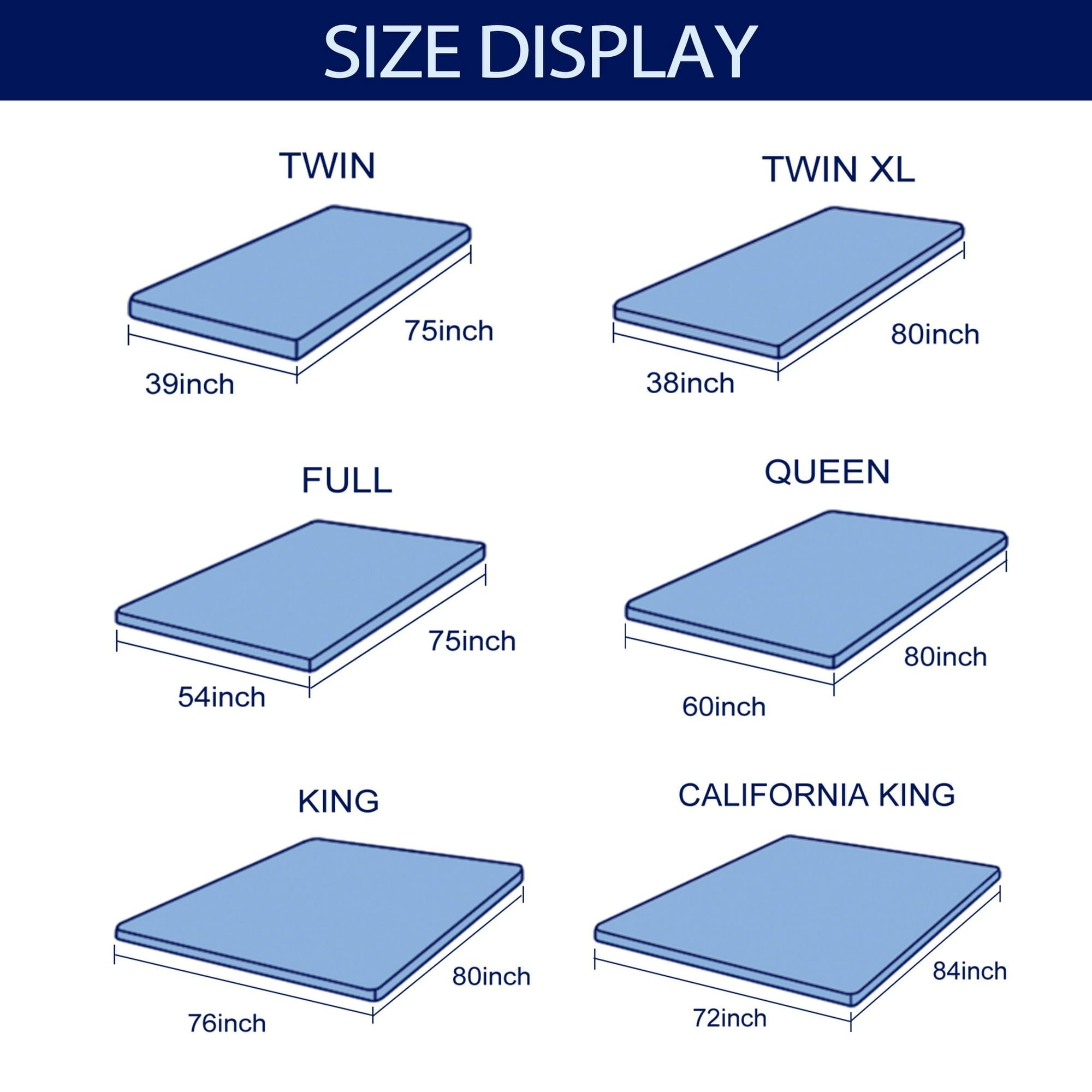 Ventilated gel-infused memory foam mattress topper will help you enjoy a night’s sleep and feel brand new every morning! The memory foam comfort layer will regulate temperature, cradle your body and relieve pressure points. The ventilated design improves airflow for a more comfortable sleep climate. The pliant material conforms to your body, offering pressure relief and a soft, plush feel. It can be placed on top of any box spring or platform bed. With the durable and thick layer of plush and conforming memory foam on the top, your bed will be the perfect combination of comfort and support.
