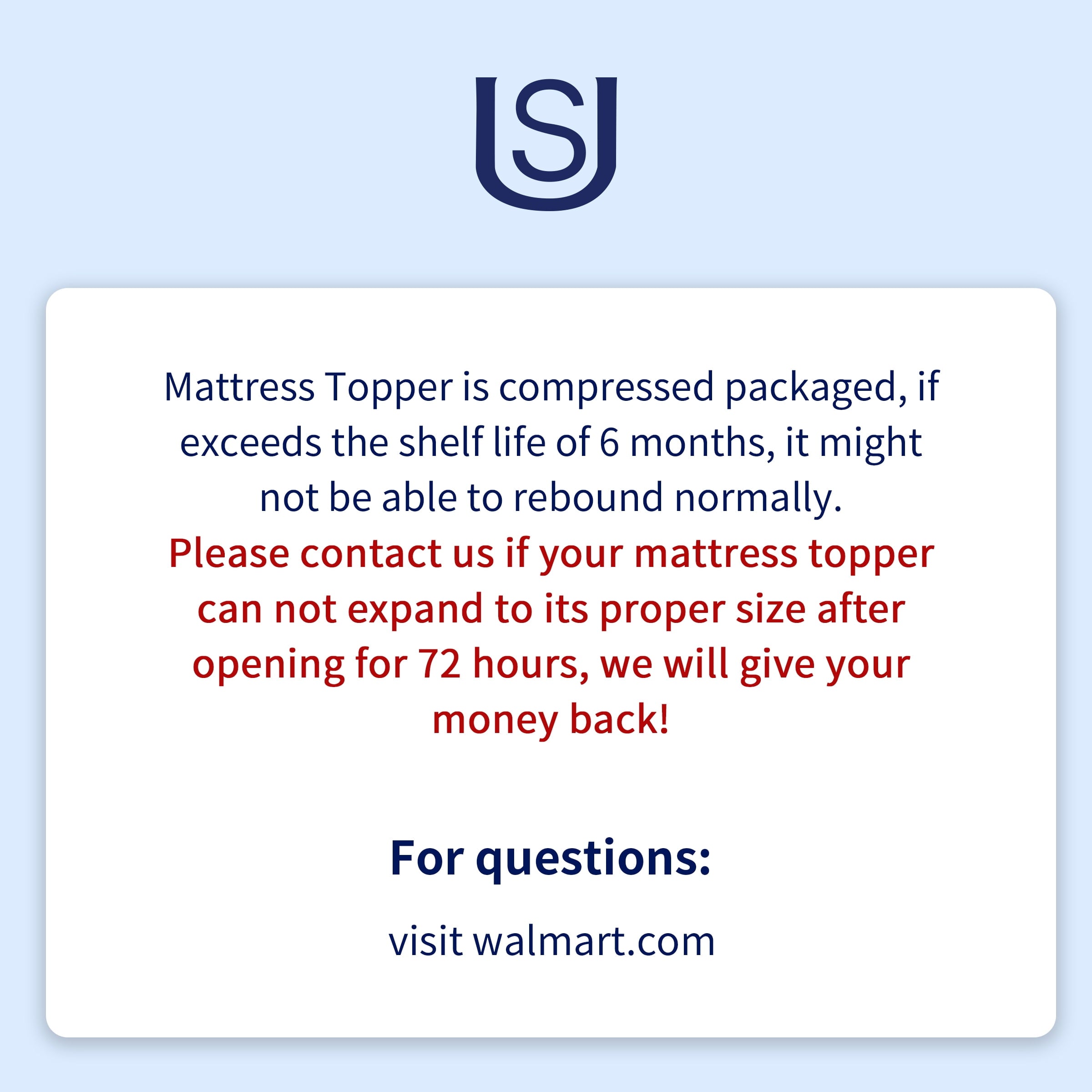 Please contact us if your mattress topper can not expand to its proper size after opening for 72 hours, we will give your money back!