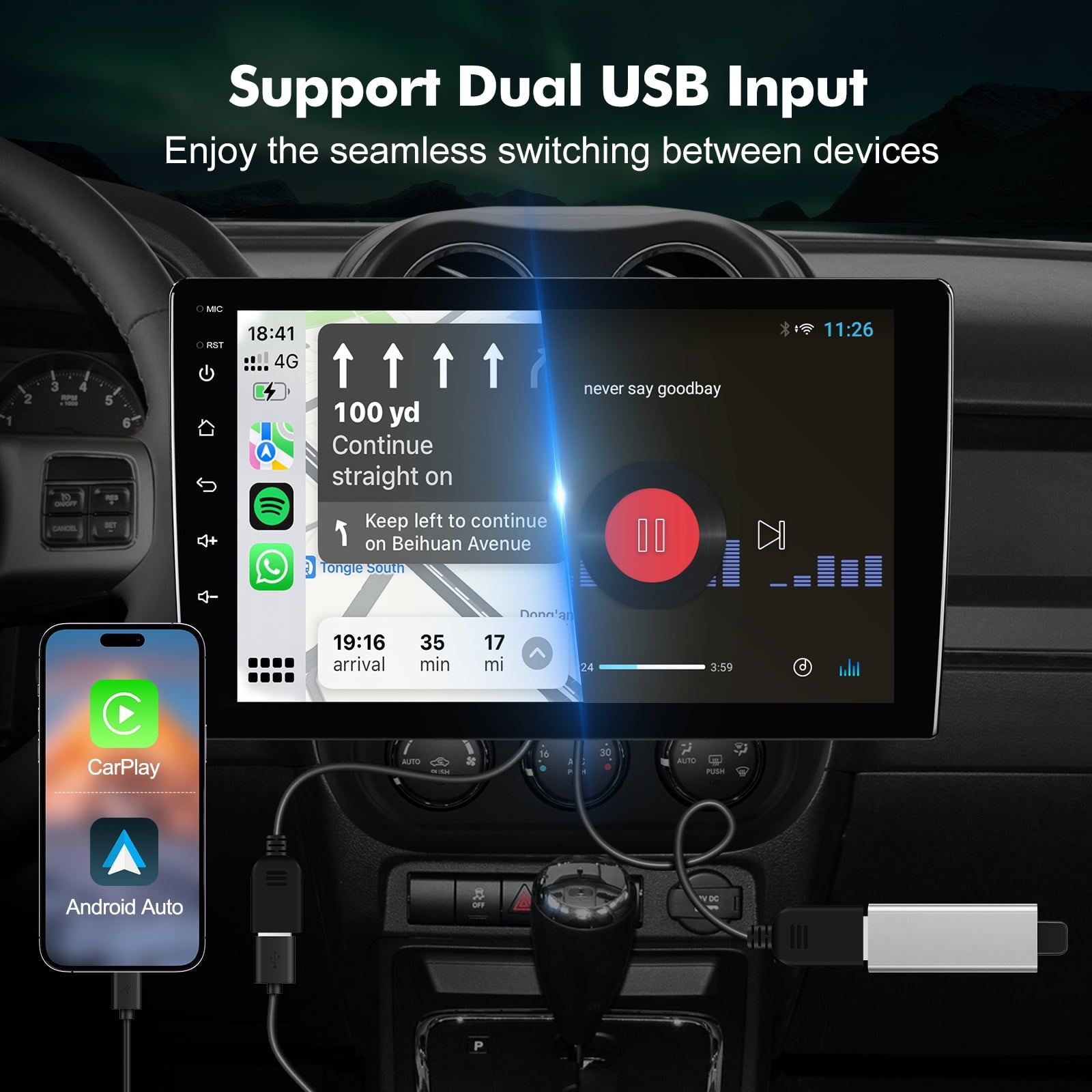 FeirTon Vehicle radios offers seamless connectivity with CarPlay, MirrorLink, and Android Auto through both wired and wireless options. It features built-in WiFi 6 supporting dual-band (5GHz and 2.5GHz) for stable and low-latency wireless connections. You can use the original USB data cable to connect your Apple or Android phone, enabling online navigation and running apps seamlessly on the car stereo.