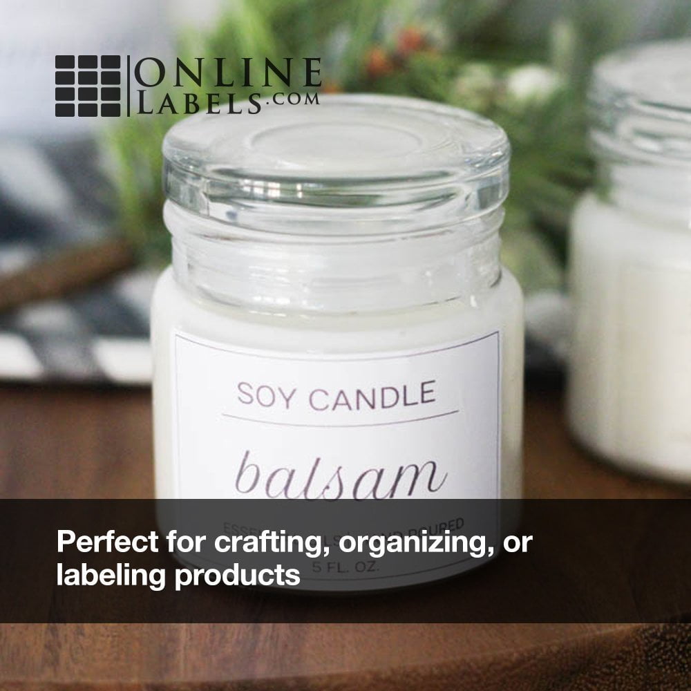 Printable 2-1/2″ x 1-9/16″ labels on white matte adhesive paper, 18-up. Label your homemade products with DIY printable stickers. These round-corner labels are also great as address and barcode labels. They are designed to print and apply easily for a hassle-free experience.Print custom stickers using Maestro Label Designer, an exclusive design program for Online Labels customers. It’s included in every order with your unique code listed on your order’s packing list. When you’re ready to print, our matte white label paper works in both laser and inkjet printers like HP, Canon, Brother, Epson, Dell, and more. Made in the USA.