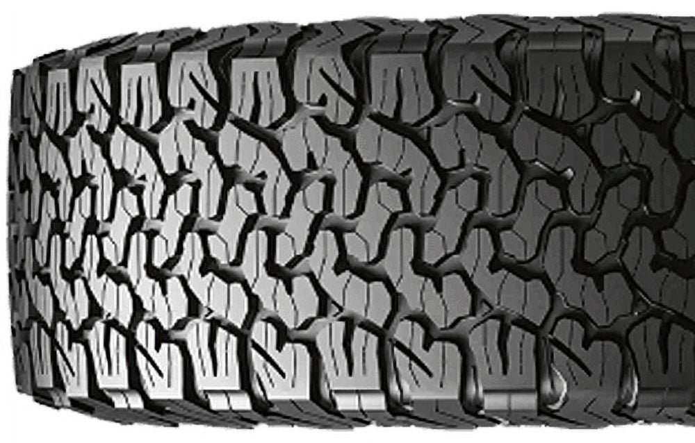 The BFGoodrich All-Terrain T/A KO2 is an all-terrain, all-weather tire manufactured for light trucks. The tire has excellent all-weather traction, and it grips the road well in dry, wet and winter weather. All weather tires receive the three-mountain peak and snowflake (3PMS) symbol for their exceptional winter weather performance. BFGoodrich offers a 50,000-mile treadwear warranty with this model. The All-Terrain T/A KO2 offers a longer lasting tread life. The optimized tire footprint spreads the driving pressure equally across the tread area. The even distribution of the force of accelerations, cornering and braking prevents irregular wear across the tread area. The interlocking tread pattern is resistant to tread wear as it increases the tire’s driving stability.