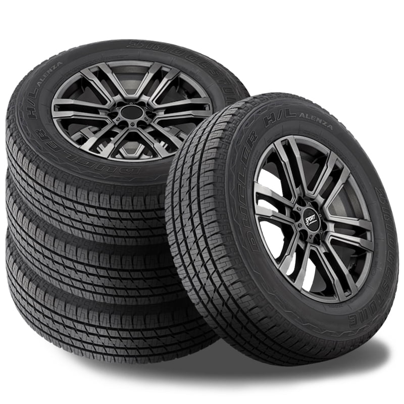 The Dueler H/L Alenza with UNI-T and/or UNI-T AQII technology is Bridgestone’s Crossover/SUV Touring All-Season light truck tire developed for the drivers of premium crossover and sport utility vehicles, as well as light duty pickup trucks. It is also backed up by a 65,000 Miles (excluding W-rated) and a 40,000 Miles (W-rated only). While all Dueler H/L Alenza sizes feature Bridgestone’s UNI-T technology to take tire behavior to a higher level by increasing comfort and control, in order to further enhance wet traction over the life of the tire select sizes also have Bridgestone’s UNI-T AQII technology which features dual layer tread compounds to resist the normal tread rubber hardening that results from the heat encountered during thousands of miles of use.