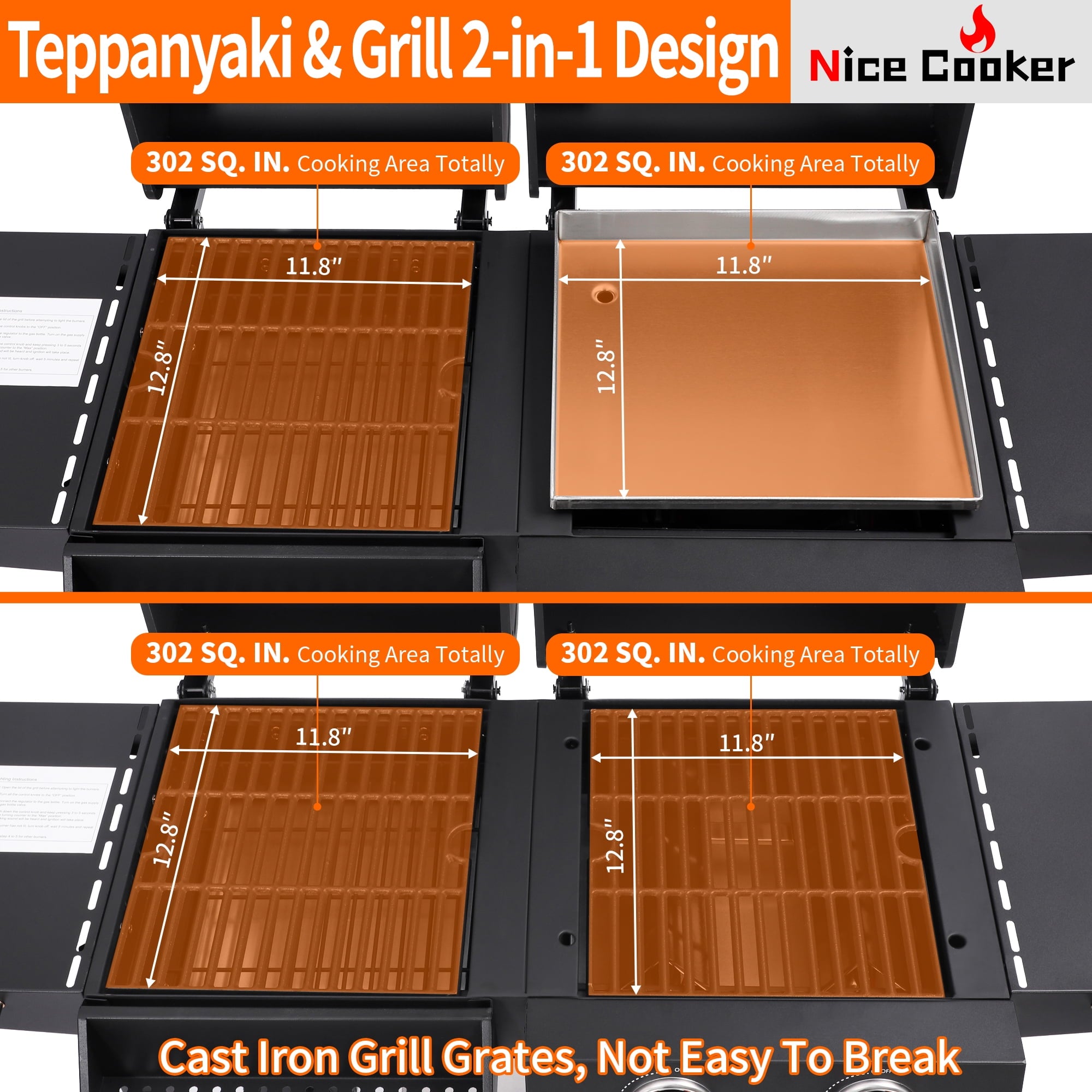 - Heavy-duty cast iron grates offer superior heat retention for optimal cooking performance.