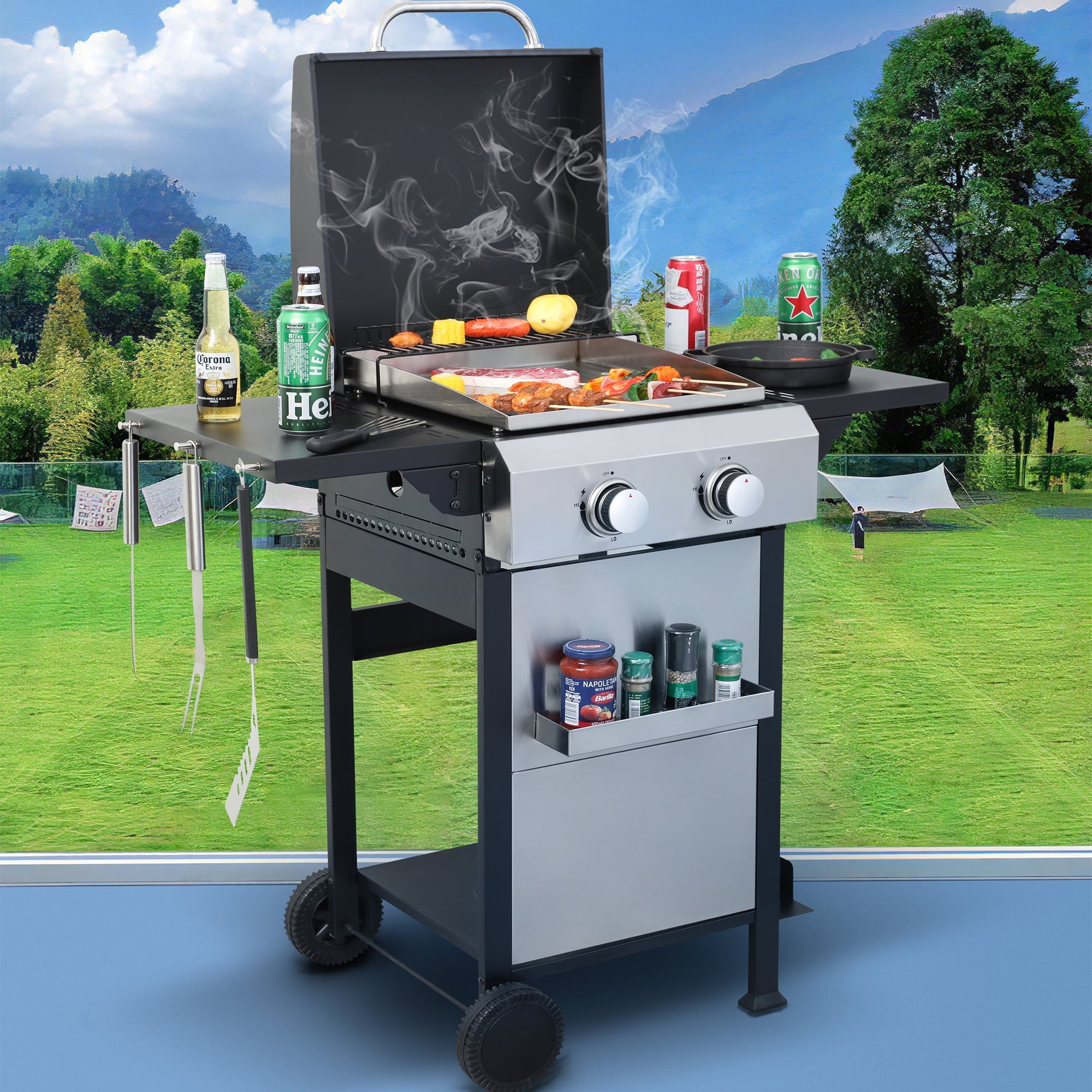 — 2-in-1 propane gas grill and griddle combo
