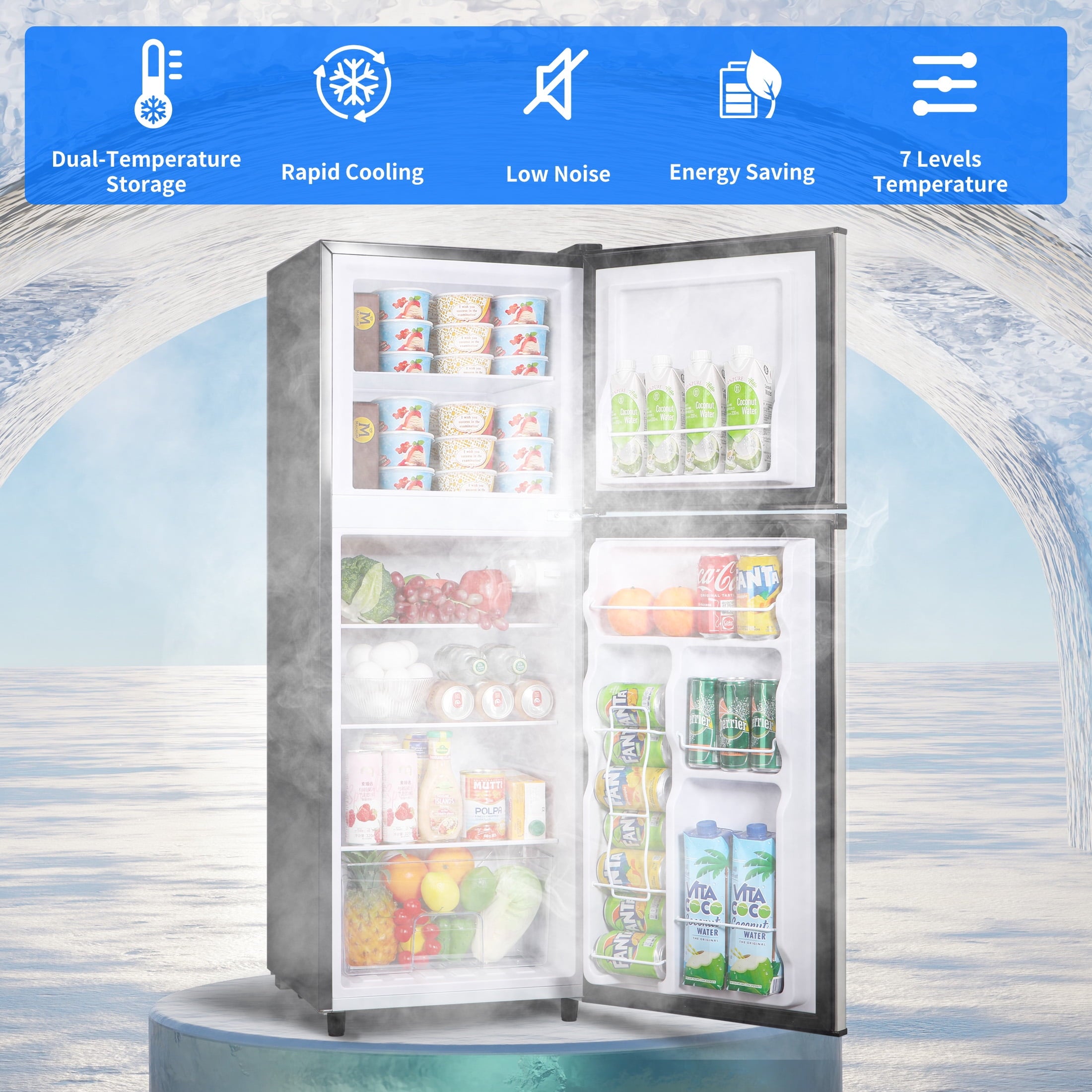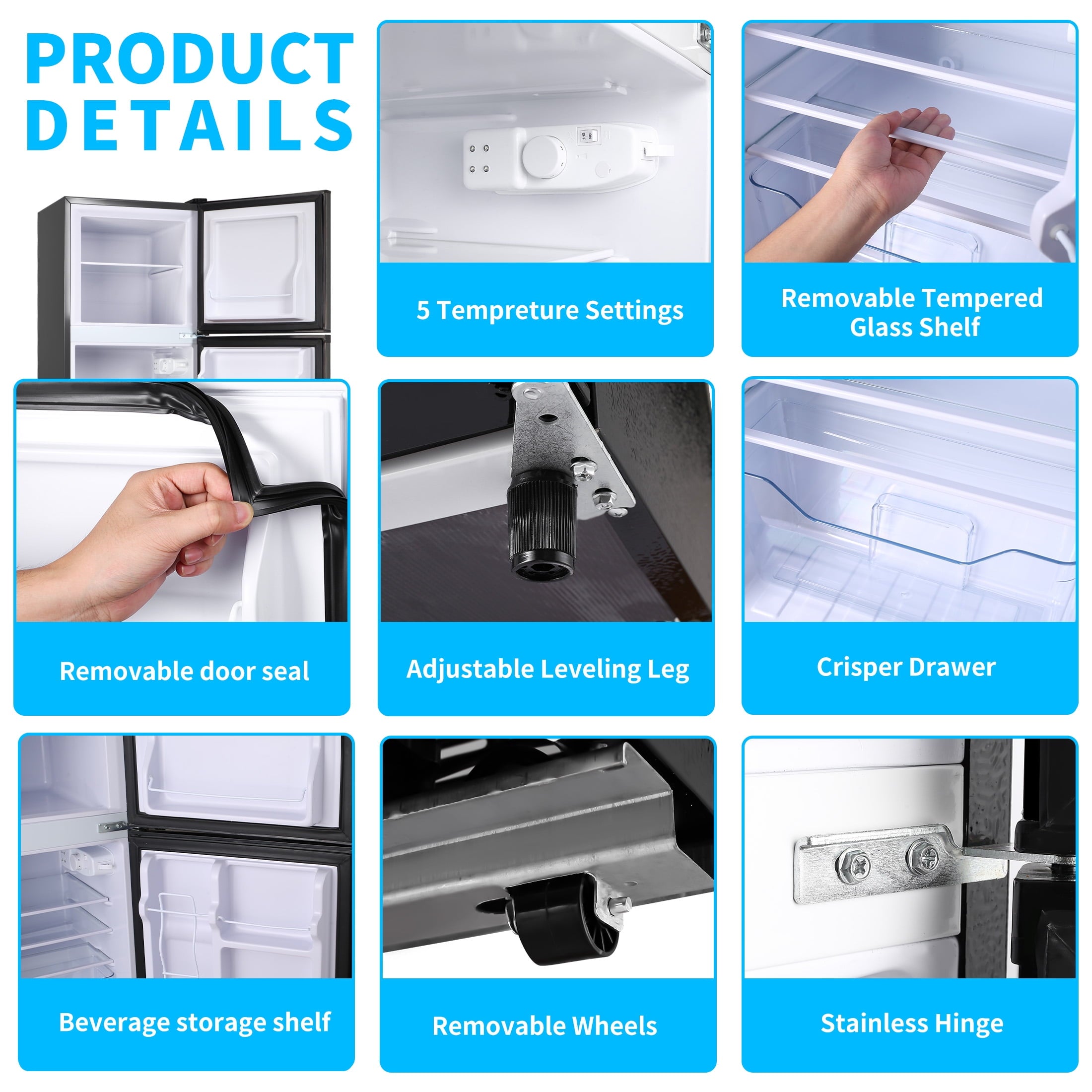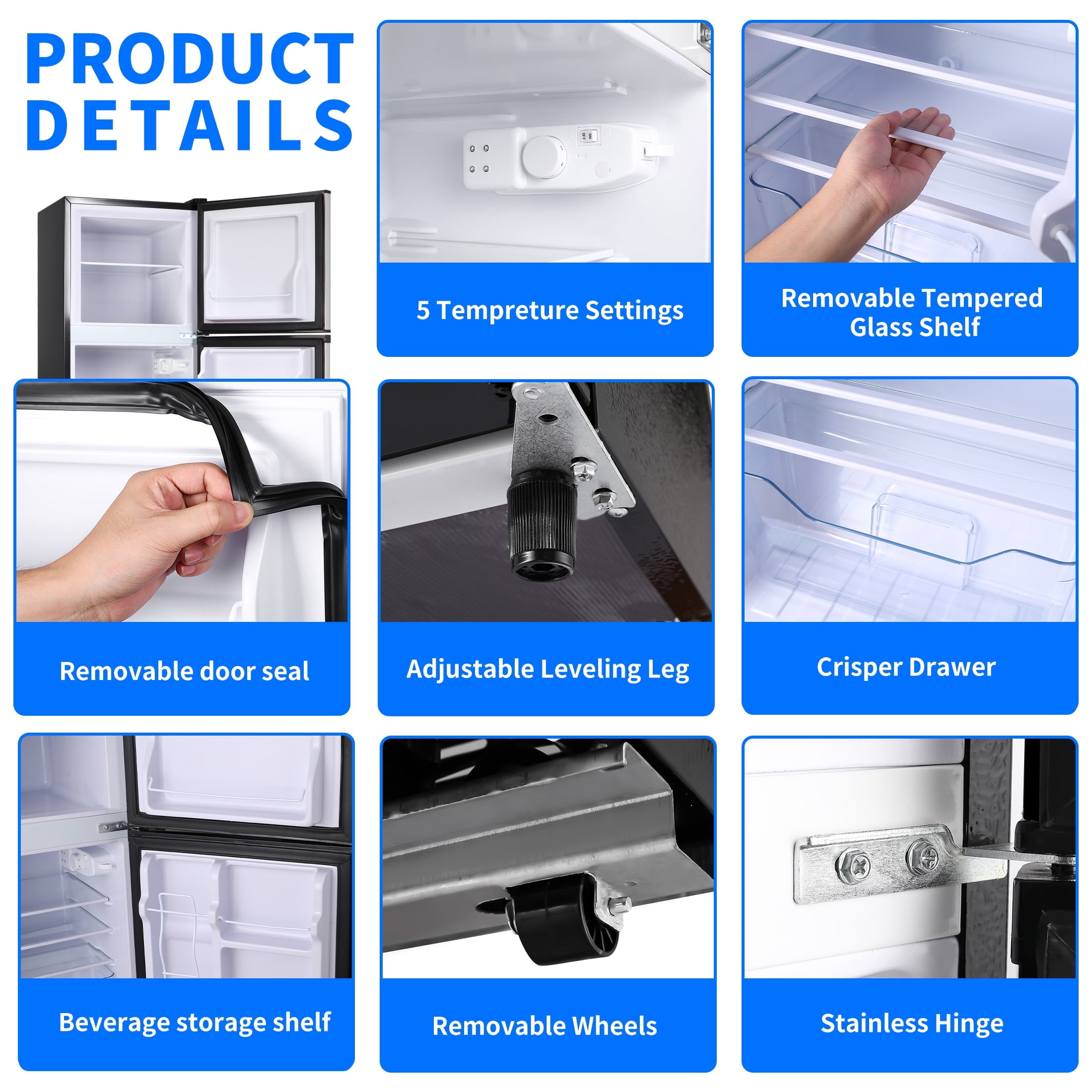 WANAI 4.5 Cu. Feet Two-Door Mini Fridge with Freezer, with its compact size and versatile features, is a reliable and space-saving addition to your living or working space. Experience the convenience of chilled beverages and frozen snacks at your fingertips – order now and upgrade your cooling experience today.